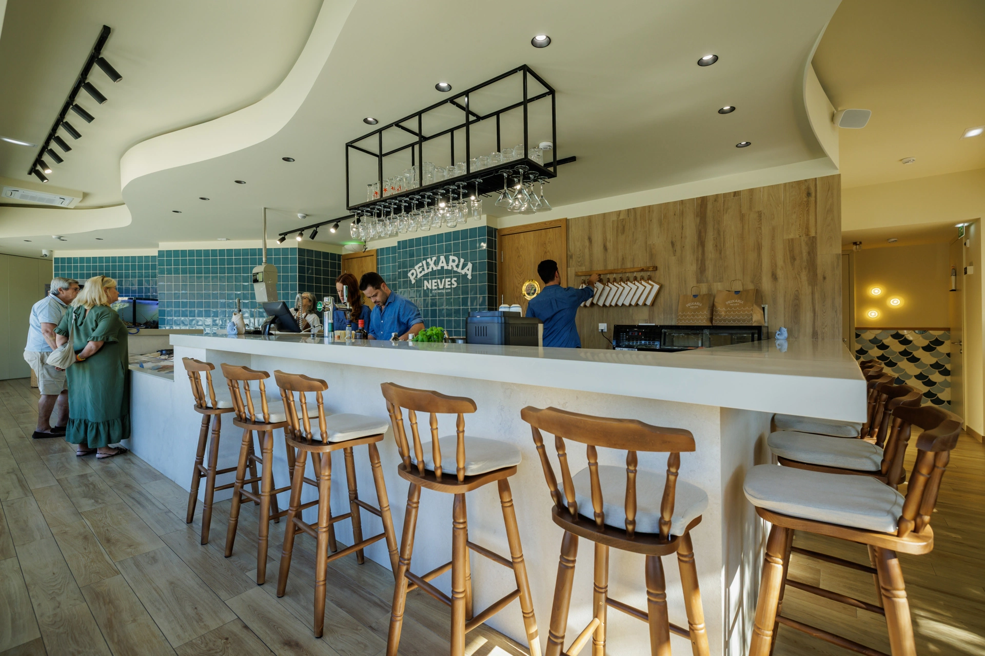A peixaria que Fernando Neves abriu há 30 anos na cidade-berço continua a dar garantia diária de qualidade e frescura aos seus clientes, mas já está longe de ser apenas um local de venda de peixe e marisco. Depois de convencer o pai a criar um balcão de sushi para takeaway, de forma a tirar partido da matéria-prima que ali tinham à mão, Olga Neves acedeu à vontade dos clientes que pediam um sítio para sentar e comer as especialidades que ali preparavam. "Falei com o meu pai e propus termos uma espécie de marisqueira-sushi bar onde as pessoas pudessem comer ao balcão marisco, sushi e peixe", conta. Os irmãos João e Ana também entraram a bordo do projeto, onde já estava o primo, André Marinho, como sushiman, e juntos levaram a bom porto a nova versão da Peixaria Neves, reaberta este verão a poucos metros da morada original, mas com mais espaço e lugares para saborear in loco uma carta reforçada de sushi, marisco e petiscos do mar.