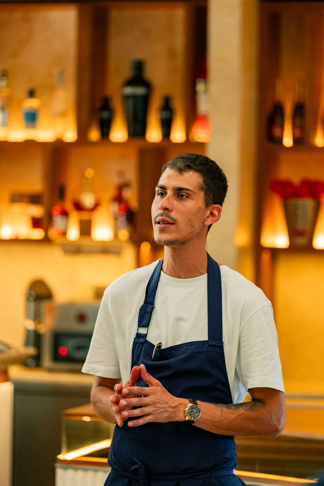 O profissional tinha entrado no Arkhe (restaurante vegetariano no Rato, entretanto encerrado) dois meses antes do anúncio da estrela Michelin quando Salvador Sobral, um dos sócios do Bonança, lhe telefonou para apresentar este novo desafio. "Foi a primeira vez que entrei num restaurante já em funcionamento, e ainda por cima numa altura em que começámos a receber grandes grupos, jantares de empresa, aniversários e a introduzir a nova carta, mas eu gosto de desafios", começa por enquadrar o chef à Evasões, após o jantar num dia tranquilo da semana.