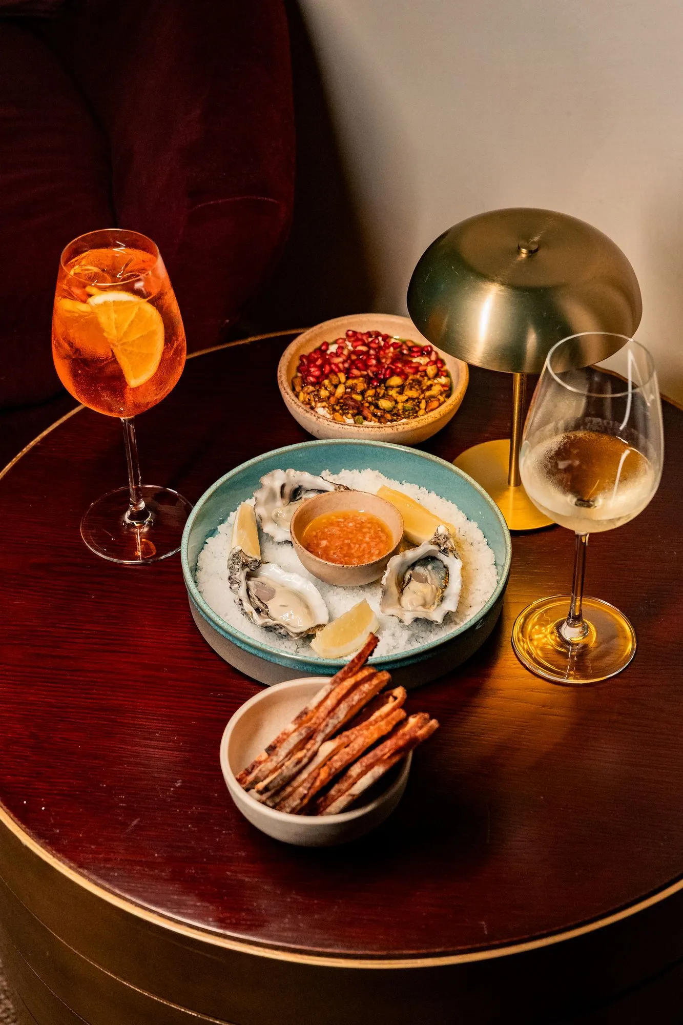 Os arrozes malandros de lingueirão e de carabineiro de limão mantêm-se como um dos eixos da casa, e receberam novas companhias. Nas entradas, ostras de Setúbal com mignonette de chalota e limão ou, querendo, caviar (a pedido); crudo de lírio dos Açores com molho de soja e óleo de sésamo; e uma sopa de marisco (em breve, com conquilhas e gambas). Nos principais, Pedro Amendola propõe, com a sua assinatura, bacalhau confitado com puré de grão de bico, crocante de broa e chouriço; e uma salada russa a que se pode adicionar atum ou caviar.