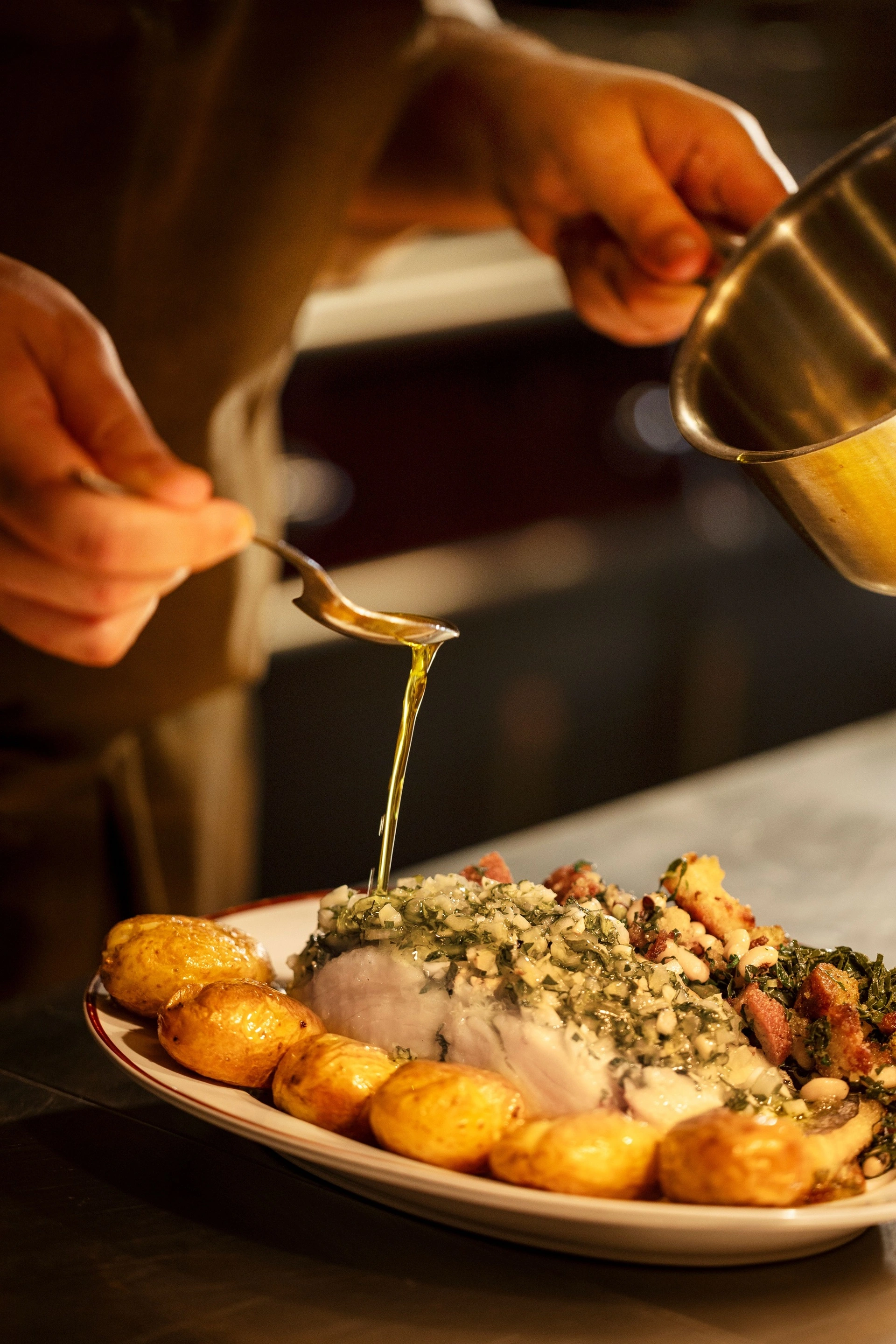 Recentes são ainda os ovos verdes, uma ode à cultura petisqueira alfacinha. E os pratos do dia, escritos numa ardósia, também estão renovados, alterando-se este leque a cada estação. Desta vez, aposta-se em filetes de pescada com arroz de tomate (segundas), entrecosto com ervilhas e ovo escalfado (terças), feijoada de choco (quartas), salsichas com couve-lombarda (quintas), arroz de cabidela (sextas), arroz de polvo (sábados) e cabrito com arroz de forno (domingos). Nos novos doces, o restaurante do grupo Plateform reforça-se com Morgado do Bussaco (à fatia ou por inteiro) e o pão de ló, na versão húmida.
