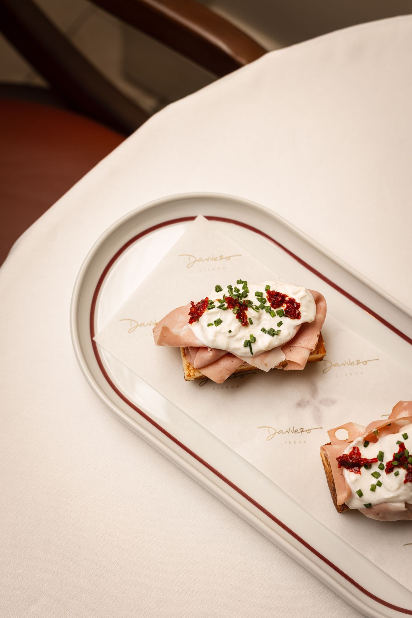 Quem visita hoje o Davvero, instalado num edifício do século XX brilhantemente decorado, com um sofá de parede azul, mesas com candeeiros a meia-luz e uma parede de espelhos - encontra um menu prestes a abraçar os sabores e produtos de outono-inverno, mas que ainda conserva as propostas introduzidas a meio do verão. Antes, porém, tudo começa com um couvert seguido de uma de várias pré-entradas, como a mortadela de Bolonha com pistacho, burrata e n'nduja, um enchido picante típico da Calábria, sobre uma base de pão brioche.
