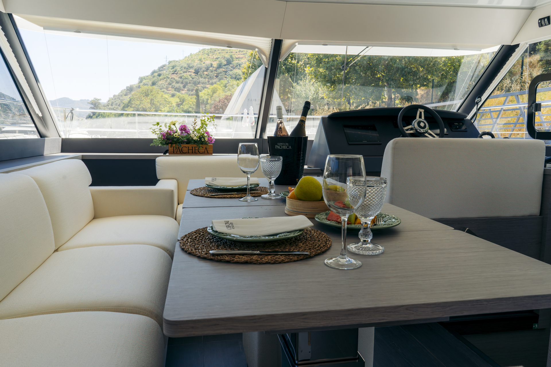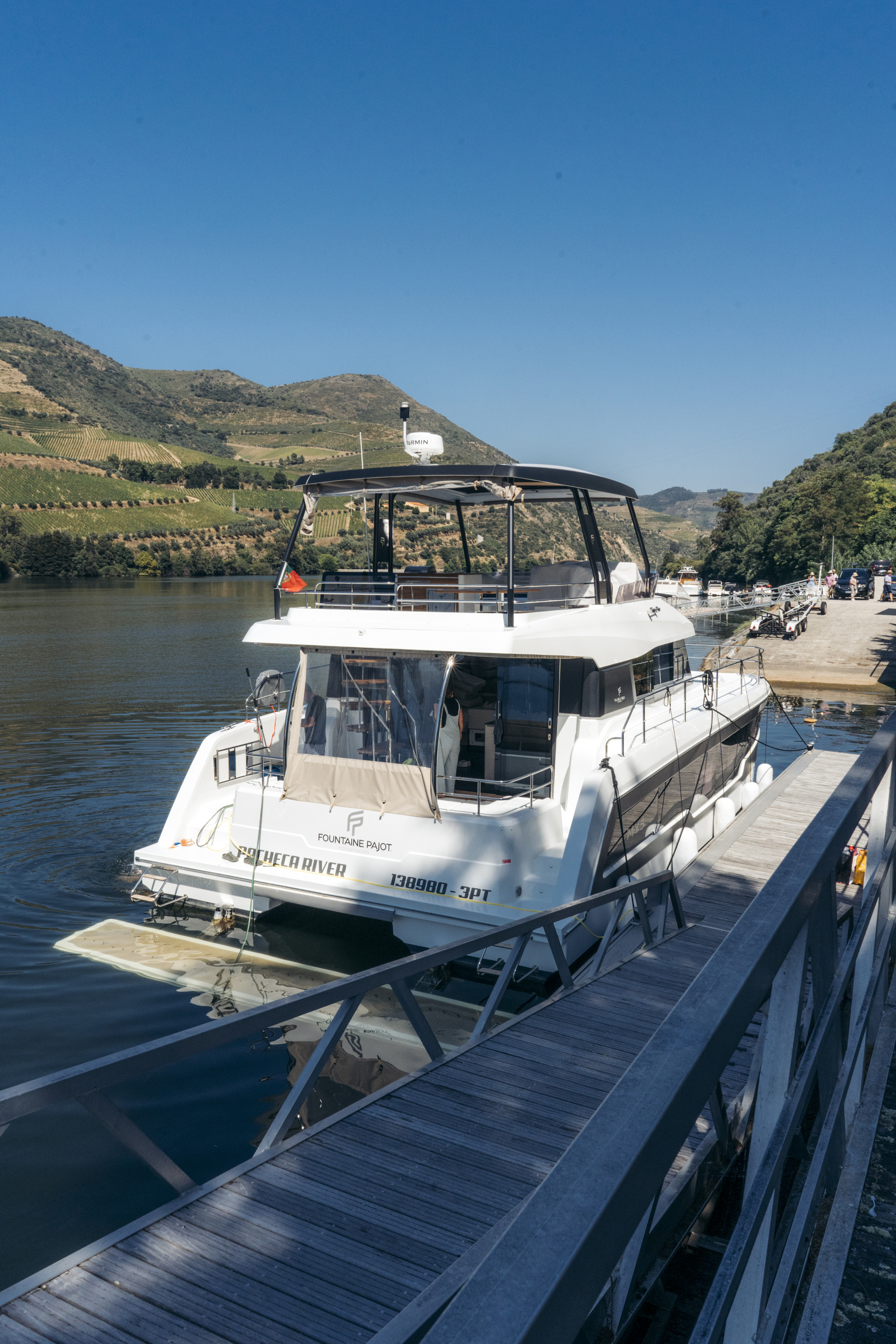Não há vista mais envolvente do vale do Douro do que aquela que se tem deslizando sobre o rio, entre as encostas recortadas em socalcos. Por essa razão, fazer um passeio de barco quando se visita o Douro vinhateiro é um programa cada vez mais requisitado. Daí o grupo Pacheca ter reforçado a oferta enoturística das suas propriedades na região adquirindo um luxuoso iate catamarã (modelo MY5 da Fountaine Pajot), para proporcionar aos seus hóspedes - e não hóspedes - um novo leque de experiências imersivas. O Pacheca River atracou este verão no Cais de Bagaúste, junto à pitoresca EN222, estrategicamente localizado a meio caminho entre a Quinta da Pacheca e a Quinta de São José do Barrilário (a mais recente unidade do grupo), e acima da eclusa, o que permite ter liberdade de partir a qualquer hora do dia em passeios de charme que conjugam o vinho, a gastronomia e a paisagem duriense.