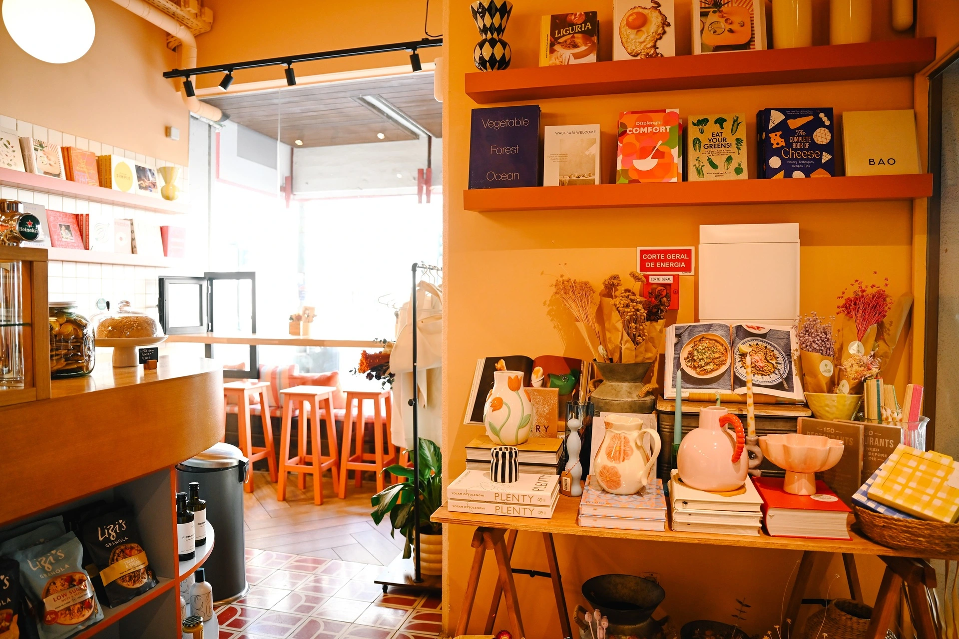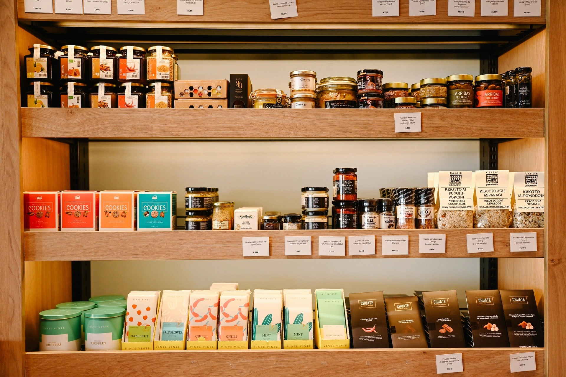 Na vertente de mercearia, a aposta faz-se maioritariamente na confeção artesanal. "Temos aqui marcas que são pequenas, e que não encontram em qualquer superfície comercial. Estão a crescer e queremos ajudar nisso", acrescenta a gerente. Cerca de metade dos produtos são nacionais e há compras para todos os gostos: do mel aos chocolates, sem esquecer os azeites e vinagres, gelados, compotas, conservas, biscoitos, especiarias e temperos, além de legumes frescos do dia. A própria casa produz alguns dos itens que aqui se vendem, como tostas de pão artesanal em azeite, manteigas ou creme de pistacho, por exemplo.