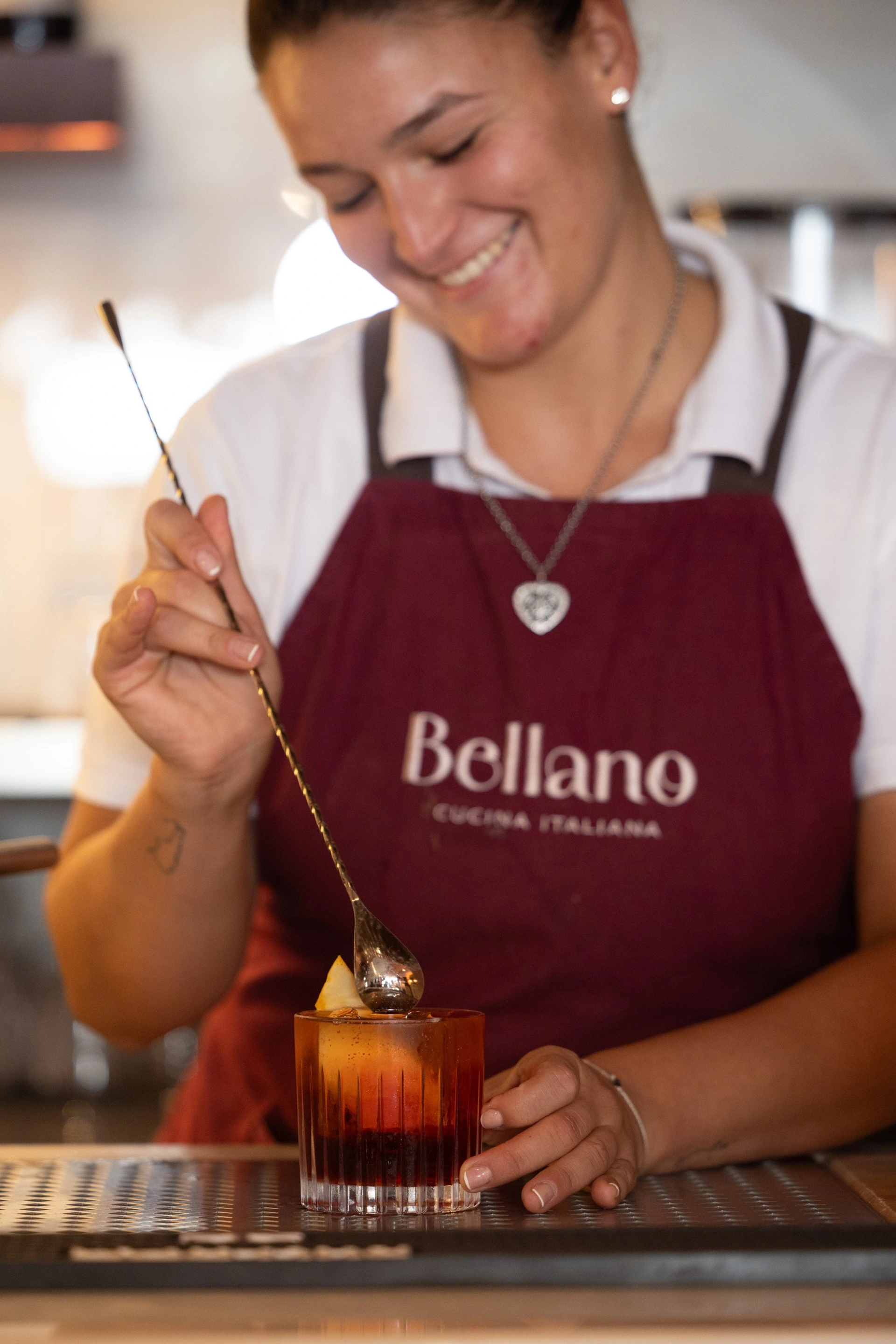 O Bellano também aposta nos cocktails de autor, com carta de Carlos Santiago, do Royal Cocktail Club. Atrás do balcão a prepará-los está a argentina Pamela Hucowsky, que deixou a carreira de personal trainer na América do Sul para se dedicar à mixologia. Aqui, e para a Negroni Week, evento decorrido em setembro em bares e restaurantes de todo o mundo, criou o Bellano Negroni, que já se tornou num dos cocktails mais vendidos da casa, e que devido ao sucesso até poderá entrar na carta.