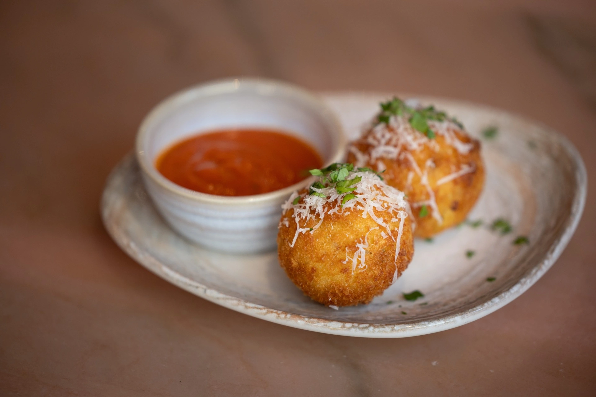 Uma das entradas com mais sucesso são os sicilianos arancini, croquete de arroz recheado com molho de carne. "A ideia foi fazer uma releitura do ossobuco". O arroz é o risoto de açafrão-da-terra e o recheio é feito com o molho e a carne do ossobuco, servidos com molho de tomate picante.