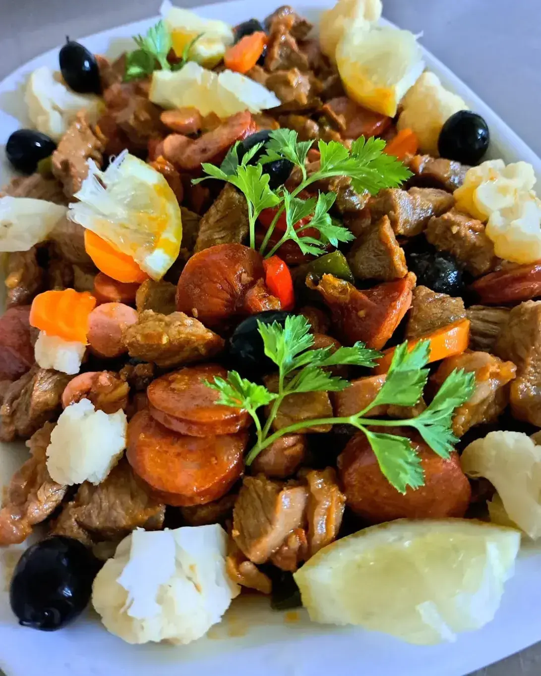 A posta de vitela arouquesa na brasa domina a oferta de pratos de carne. Trata-se do produto real e selecionado e é a forma de estabelecer contato com o fabuloso mundo bovino arouquês. É sem dúvida uma das melhores carnes nacionais. Ao almoço de domingo há um fantástico lombo de porco assado, assessorado por competentes batatas de forno. Há sempre frango de churrasco com arroz e batata. A espetada mista é composta de boas carnes e trabalhada com precisão. Há cozido à portuguesa ao almoço de quinta, rico, bom e diversificado. O almoço de sábado e dias de feira proporciona boas tripas à portuguesa.