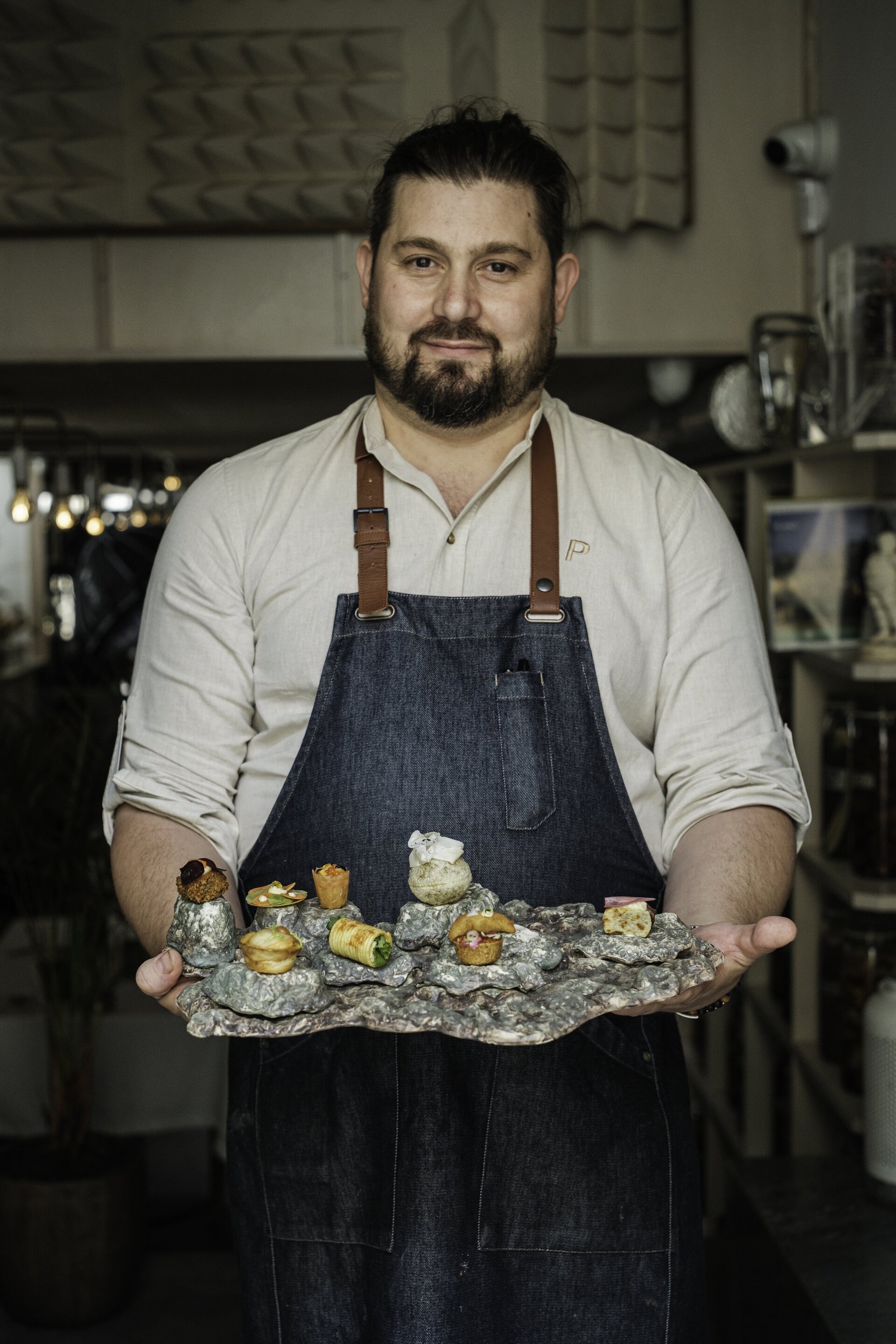 O seu esplêndido menu Raízes revela um conhecimento profundo dos cocurutos nordestinos. Em nove snacks, cada um dedicado a uma serra de Trás-os-Montes, conduz-nos palmo a palmo pelos seus sabores. A terrina de Barrosã em farinha panko (Gerês) revela enorme sensibilidade. Vem depois uma tartelete de couve, cenoura e alho negro (Larouco) que me deixa sem palavras. O coscorão de truta e maionese de wasabi (Barroso) é homenagem genial ao peixe de rio. O croquete de bísaro e papada de porco (Montesinho) é profundo nos matizes de sabor. O rissol de javali com molho hoisin (Nogueira) celebra a rusticidade através da delicadeza. Na brandada de bacalhau com batata kennebec e cebola queimada (Brunheiro), encontramos refúgio sentimental. O canhonho grelhado (Miranda do Douro) mostra o cordeiro no seu melhor. O tártaro de vitela Mirandesa e gema curada (Bornes) é fresquíssimo. E o covilhete de maronesa, gel de lima e acelgas (Marão) fecha o desfile, com a óbvia dedicação a Vila Real.