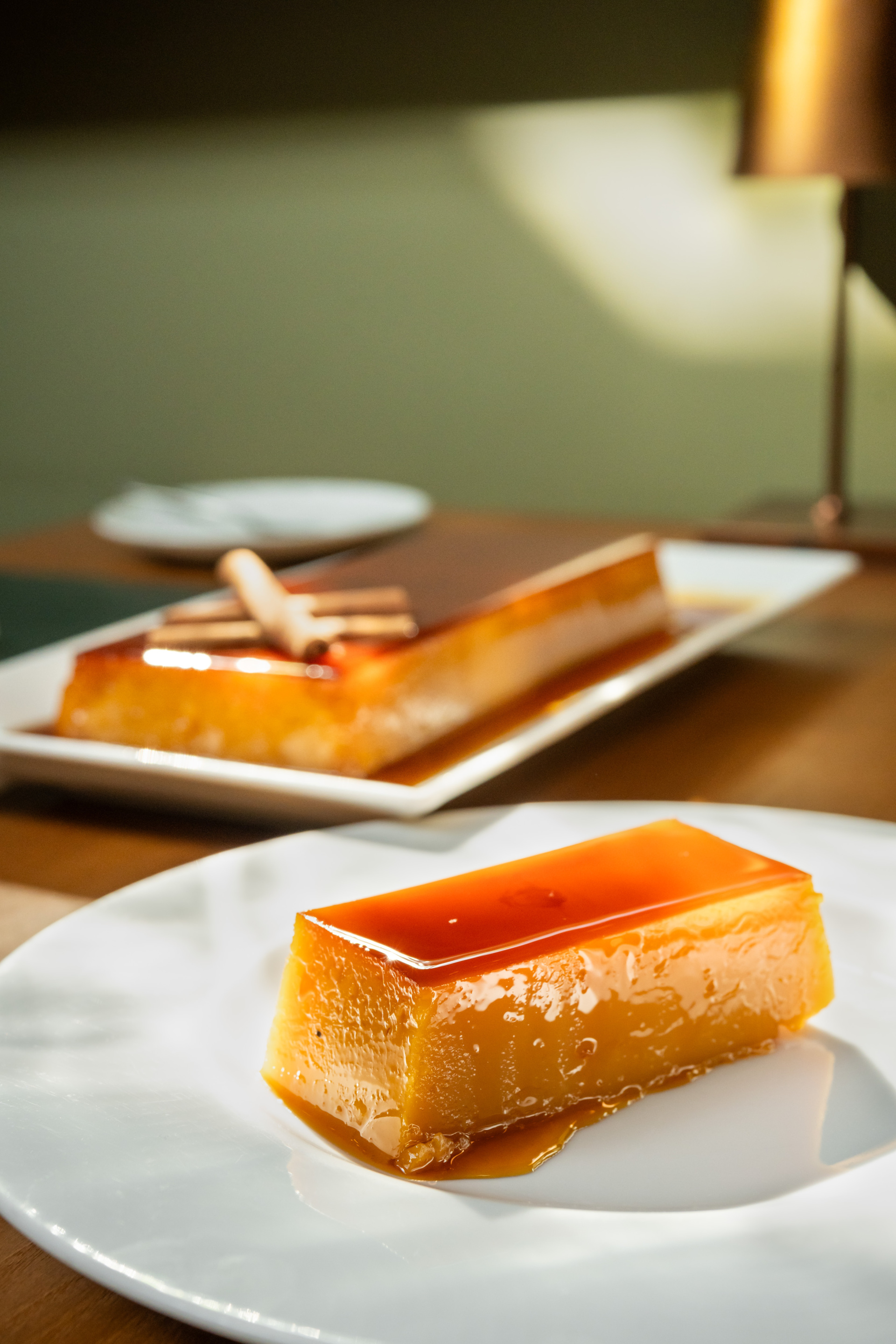 Vai para o carrinho numa travessa, e sendo a escolha para terminar a refeição, a fatia é cortada no momento. Seduz com os seus bonitos tons âmbar e conquista na boca com a textura aveludada, a doçura no ponto e a profundidade do caramelo. É um clássico.