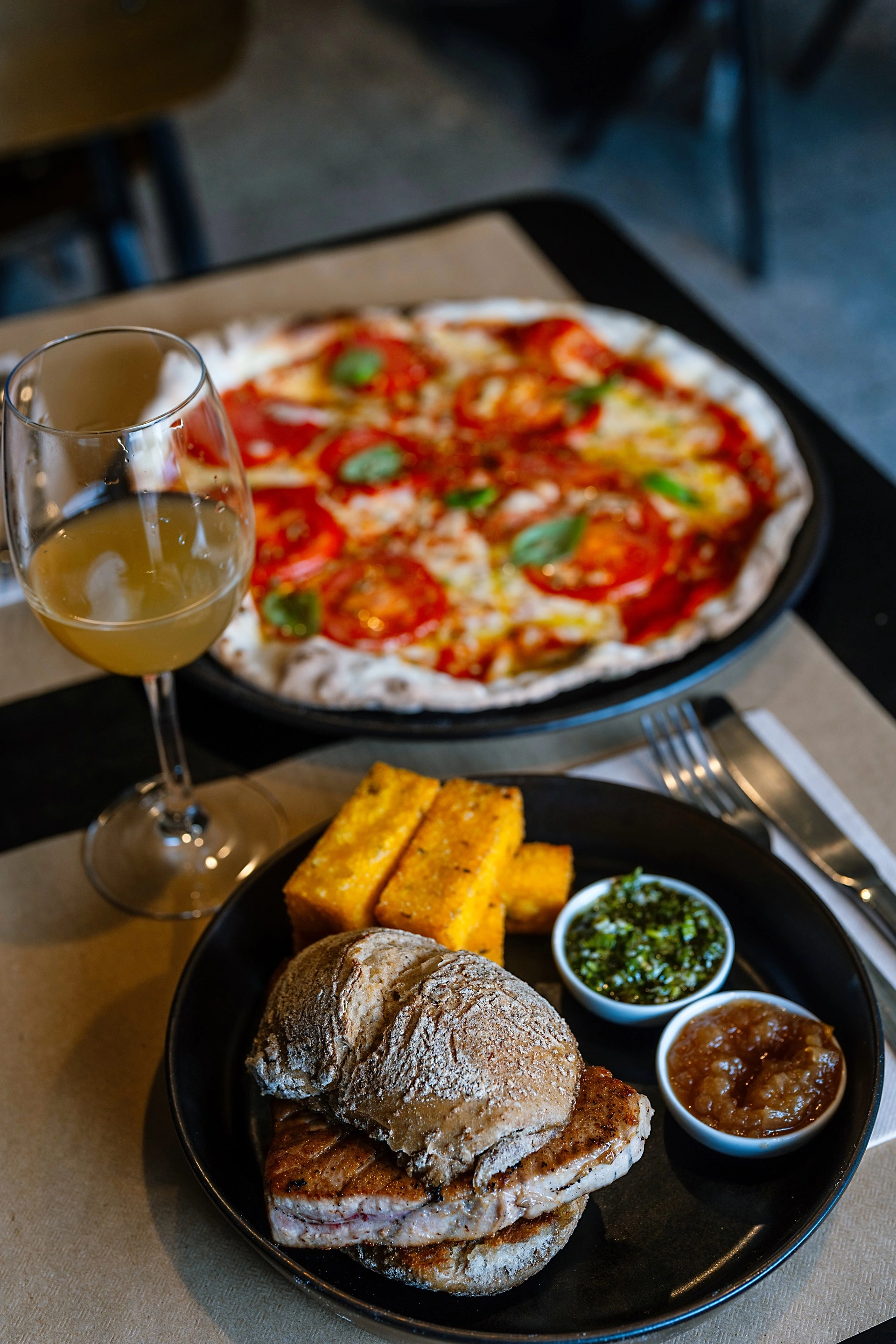 Aqui, mantém-se a carta, mas com alguns acrescentos. "A grande diferença são as propostas na chapa, a que demos nomes de arquitetos, como o prego de atum com polenta frita a que chamamos Nasoni", conta Daniel. Também há prego de frango picante (Siza) ou de cogumelo panado (Souto-Moura). Como proposta vegetariana há também o hambúrguer, feito de bulgur, cogumelos, tomate seco e feijão preto. Ao almoço há menu com sopa, entrada prato, bebida e café, por 11 euros.
