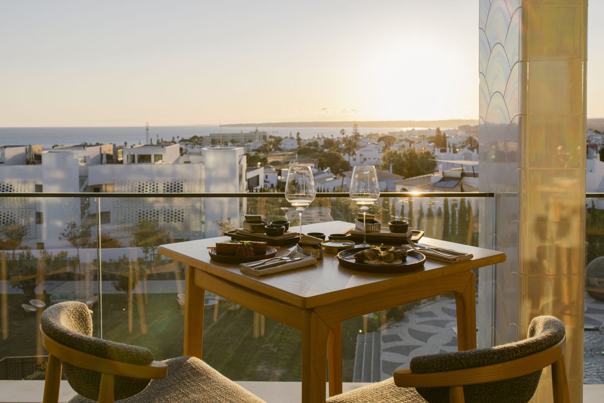 Sobranceiro à praia da Falésia e com vista para o mar e para a serra de Monchique, o terraço do Vino, aberto a não hóspedes no hotel W Algarve, tem provas orientadas por sommelier, mas não se fica por aí. Também há conservas, espetadas e doces - sempre com um copo por perto.