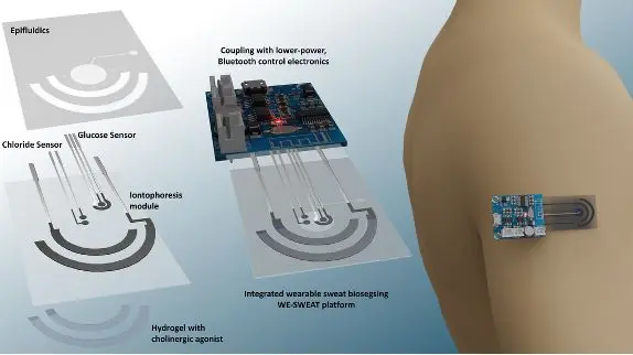 "A ideia do WE-SWEAT é desenvolver um dispositivo semelhante a uma pele eletrónica que, ao ser colocado sobre a pele, estimula eletricamente a produção de suor e deteta os níveis de glucose e de cloretos", explica Elvira Fortunato, professora e investigadora da Universidade Nova de Lisboa, ao JN. "Para as pessoas com diabetes, isto evita as picadas constantes; no caso dos cloretos, permite um diagnóstico mais eficiente da fibrose quística."