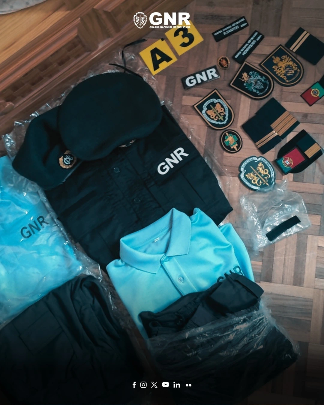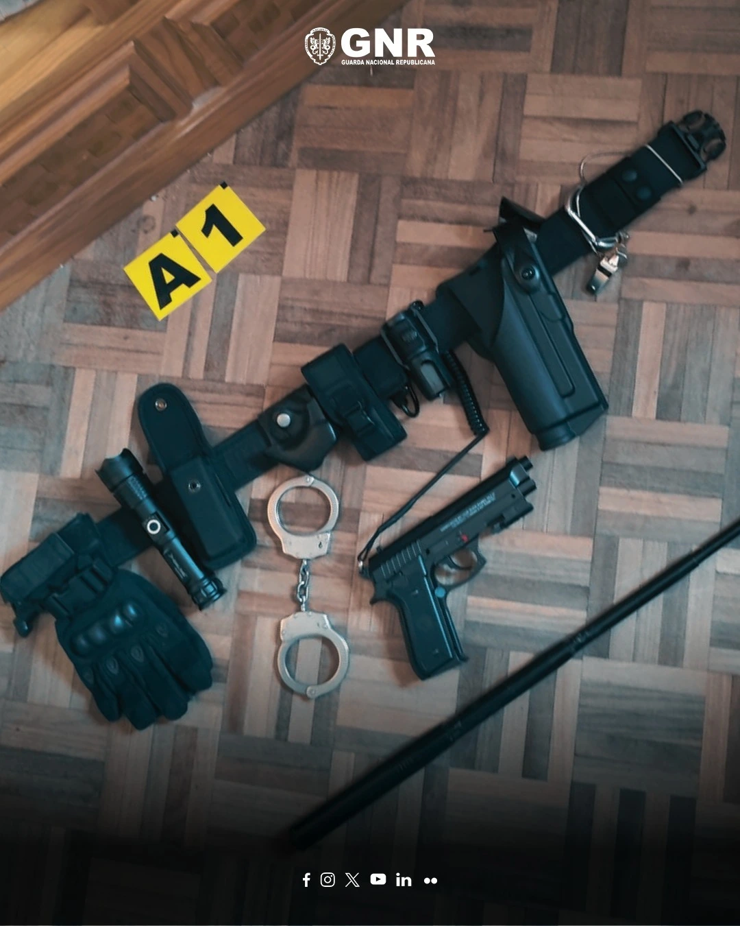 Na operação foi apreendido diverso material de identificação da GNR; um crachá modelo GNR; diversos artigos de uniforme utilizados pelas forças de segurança (GNR/PSP); diverso material tático utilizado pelas forças de segurança (GNR/PSP); dois coldres para arma de fogo; uma arma proibida; oito botijas de C0 2 para a arma de ar comprimido; um frasco de 1.500 unidades de chumbo; quatro rádios de comunicação e respetivas bases carregadoras e auriculares; três cartões de identificação do Instituo Nacional de Emergência Médica (INEM) e dos Jovens Bombeiros de Lisboa, em nome do suspeito; um cartão de operacional DAE (Desfibrilação Externa), também em nome do suspeito, e dois telemóveis.