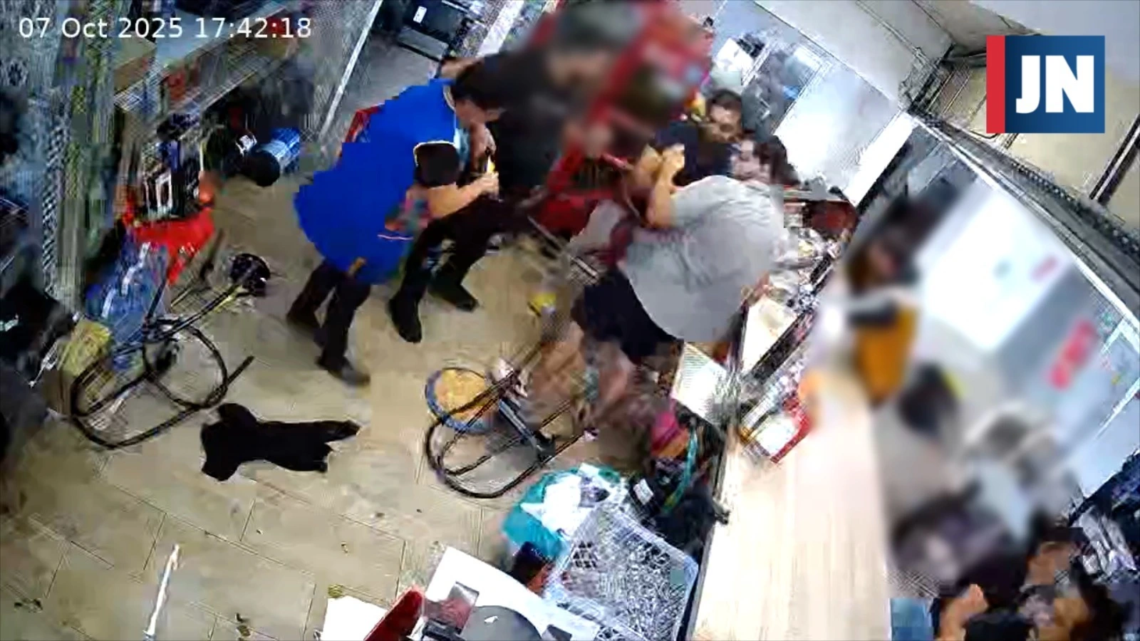 No entanto, pouco depois, um outro cliente atinge o empregado com um primeiro murro e espoletou minutos de enorme violência. Rapidamente, vários homens e uma mulher agrediram a vítima que, num primeiro momento, ainda conseguiu reagir.