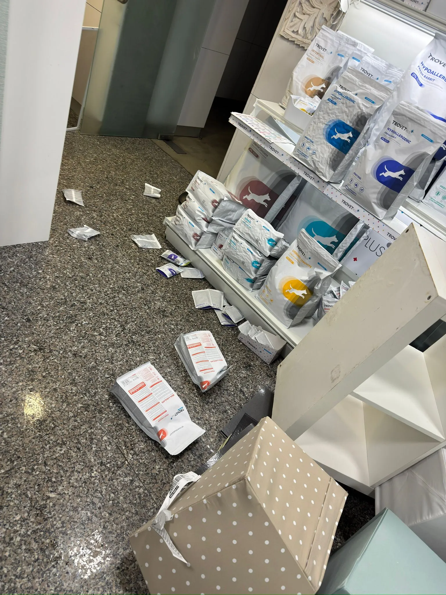 O estabelecimento ficou com danos consideráveis, incluindo a porta e a montra partidas, a câmara de vigilância destruída e vários equipamentos e peças de mobiliário inutilizados.