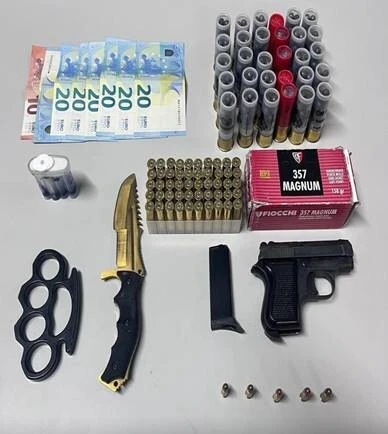 Uma Equipa de Intervenção Rápida, do Comando Distrital de Braga da Polícia de Segurança Pública, confiscou uma pistola e cerca de uma centena de munições, um punhal e uma soqueira cuja posse também é punida pela Lei das Armas.