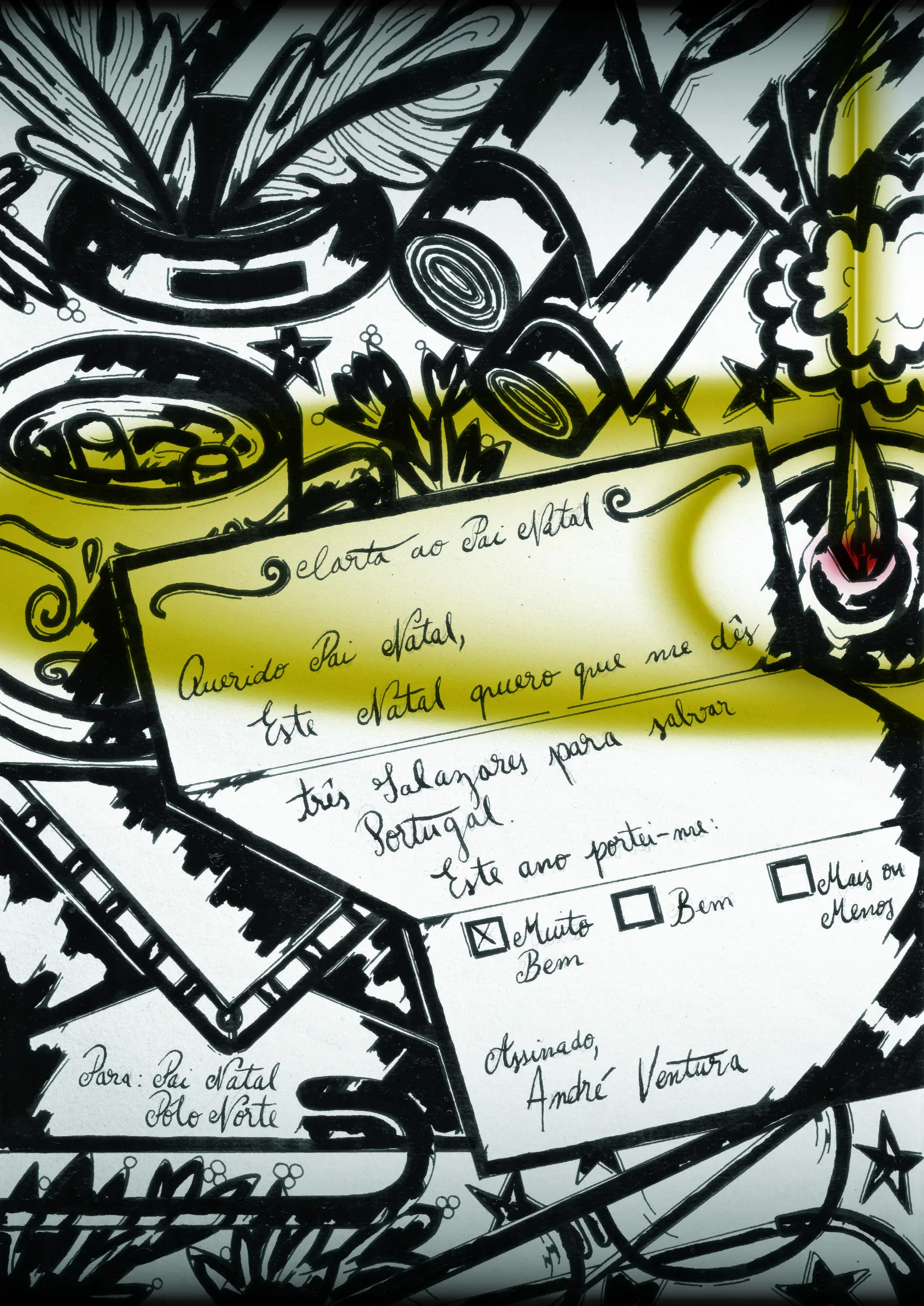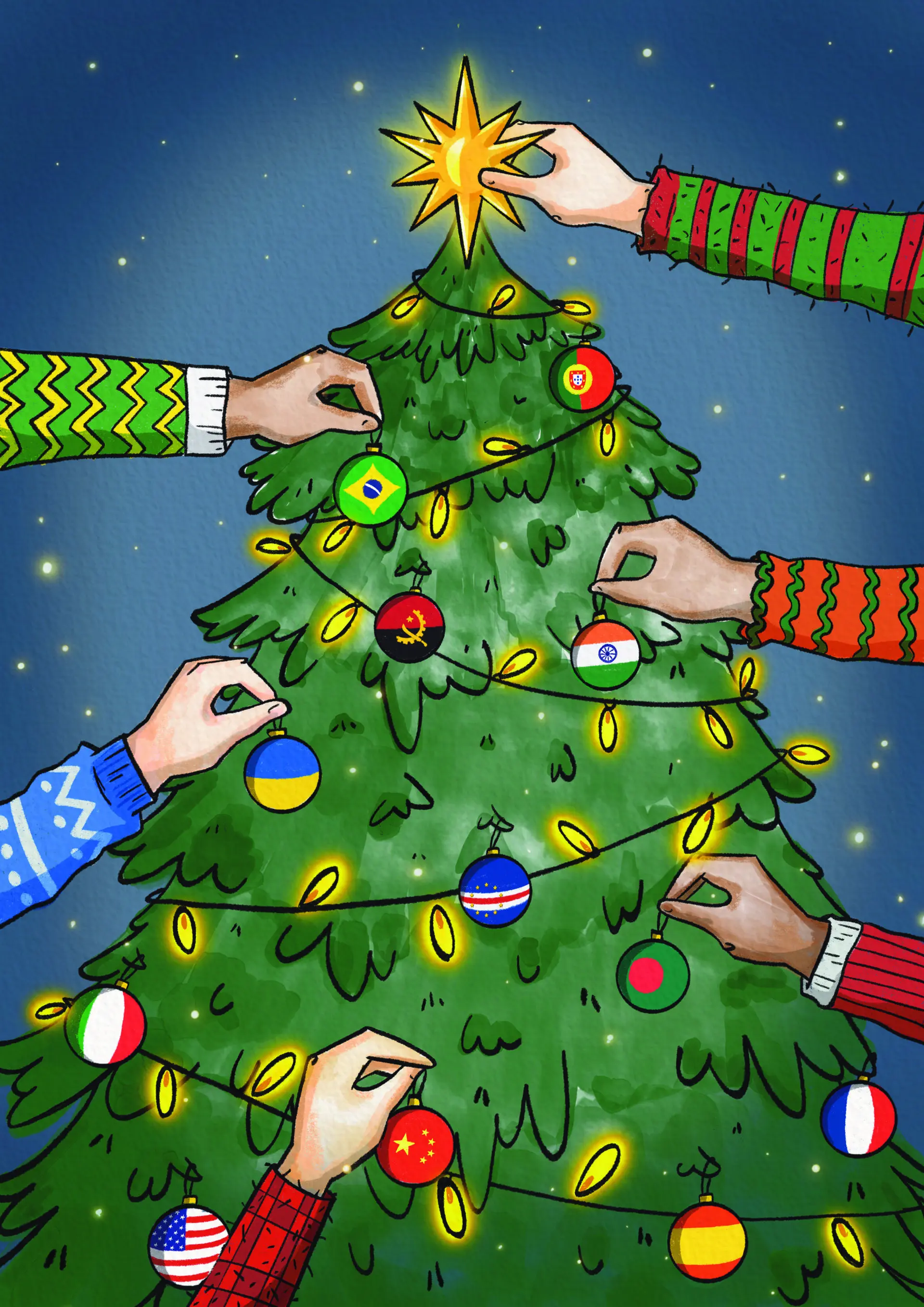 Os estudantes do mestrado em Ilustração e Animação do Instituto Politécnico do Cávado e do Ave (IPCA), em Barcelos, responderam, com técnica, criatividade e imaginação, ao desafio lançado pelo JN para ilustrarem a capa da edição do dia de Natal. Neste que é o 11.º ano consecutivo da iniciativa, a adesão dos alunos foi grande. Veja abaixo o trabalho vencedor e mais 14 ilustrações.