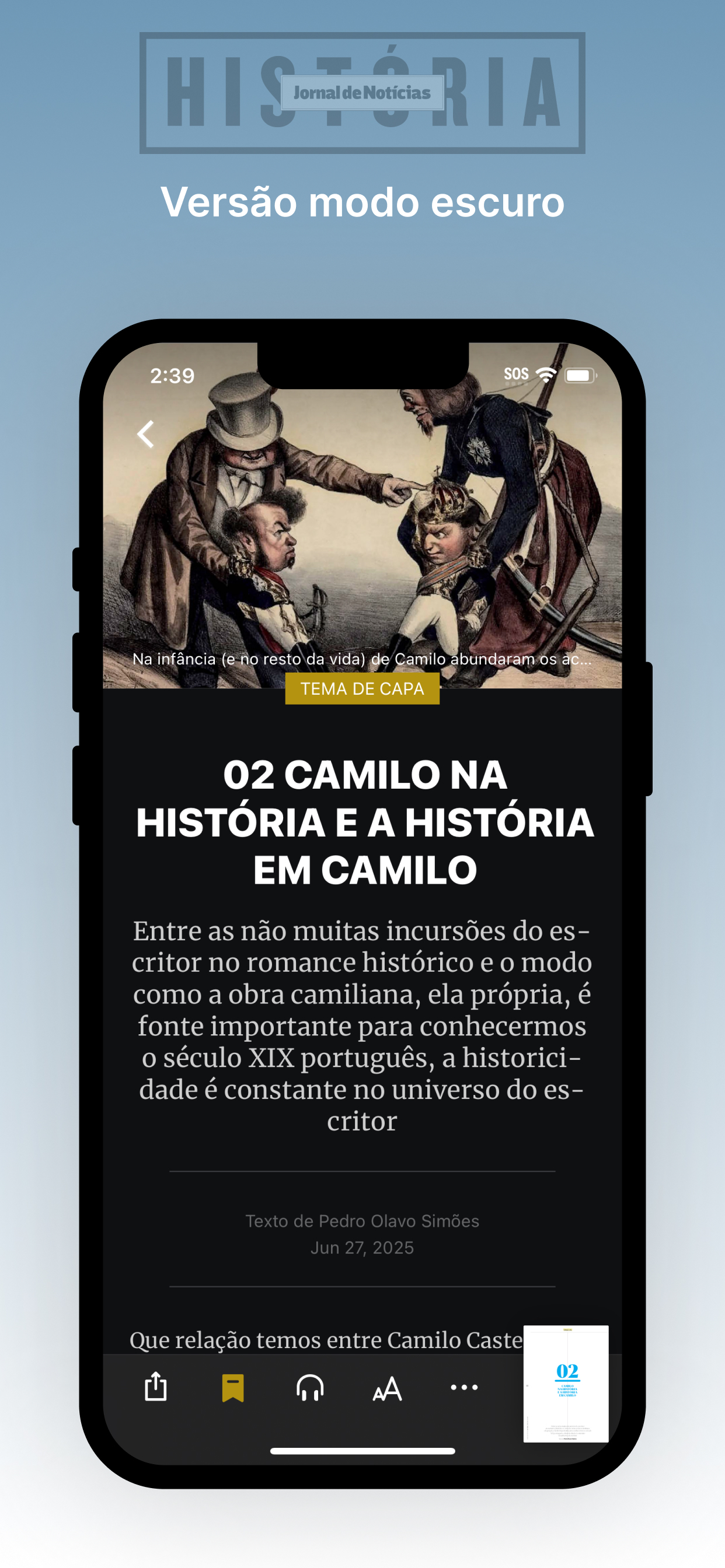 Está já disponível, nas lojas Google Play e App Store, a nova app da "Jornal de Notícias História", que passa assim a ser a porta de entrada dos assinantes para a versão e-paper desta revista bimestral. Tendo acabado de cumprir dez anos de publicação, a JN História é, atualmente, a grande referência nacional, no que à imprensa escrita respeita, na divulgação de temas históricos e patrimoniais, não só respeitantes ao passado de Portugal mas abrangendo também toda a história universal.