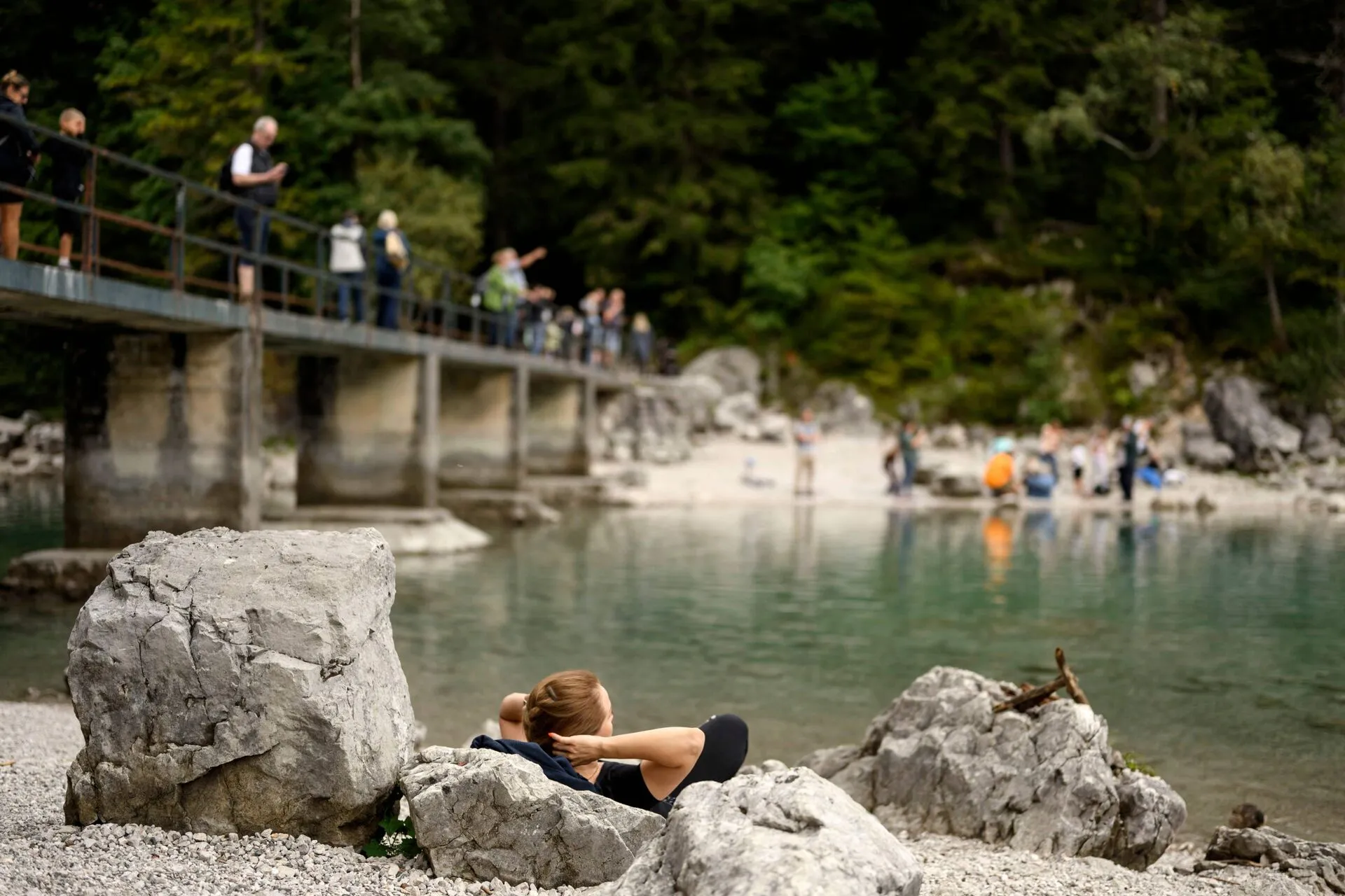 Depois de terem vindo de carro para passar o dia, Max e Yan demoraram quase uma hora e meia para chegar ao lago. "Tinha muita vontade de vir aqui" pela segunda vez, explica Max, de 27 anos, residente de Estugarda. Yan, que vive em Paderborn, acha que há "muita gente", mas destaca que o lago é "facilmente" acessível de Munique e que é "um lugar fantástico para passar o dia".