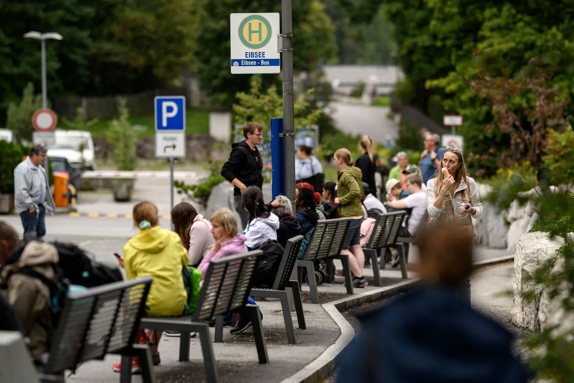São 10 horas de segunda-feira e na estação de comboio de Grainau, cerca de 30 pessoas aguardam o autocarro que as levará ao lago. O último já está cheio e um grupo precisa de esperar pelo próximo. Uma única estrada leva ao Eibsee e há apenas dois estacionamentos para aceder ao teleférico do Zugspitze, o pico mais alto da Alemanha. As vagas disponíveis são escassas. O resultado: um grande congestionamento nos últimos quilómetros.