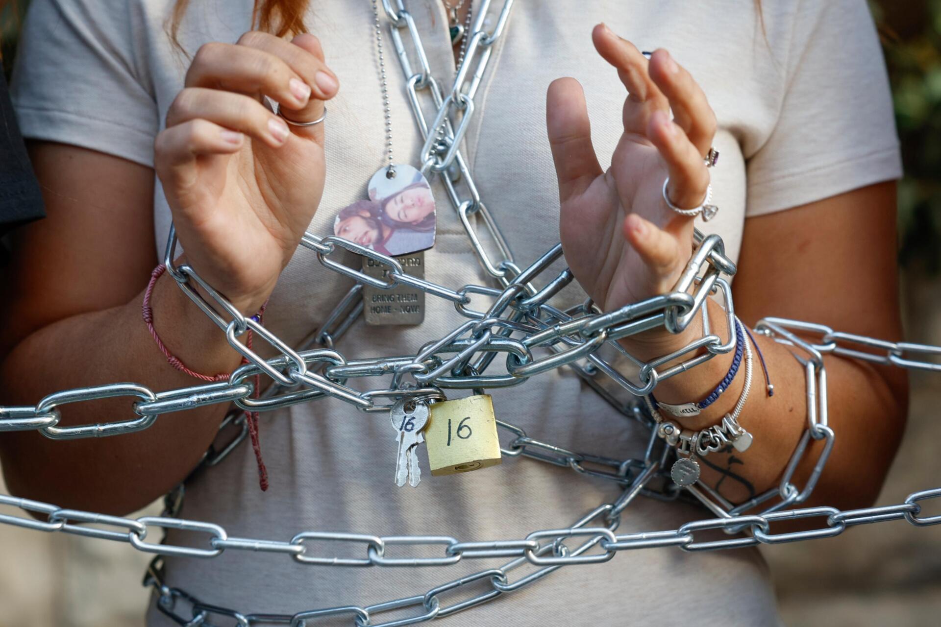 "Por quanto tempo ficaremos sentados e a chorar? Por quanto tempo sacrificarão os nossos filhos no altar desta guerra eterna? A segurança de Israel significa ocupar Gaza? A segurança de Israel significa colocar soldados em risco de morte numa guerra desnecessária?", questionou, Einav, mãe de Matan Zangauker, raptado pelo Hamas nos ataques de 7 de outubro de 2023 no kibutz de Nir Oz, num grito replicado por um coro de dezenas de pessoas que se juntaram ao protesto das acorrentadas: "Basta!"