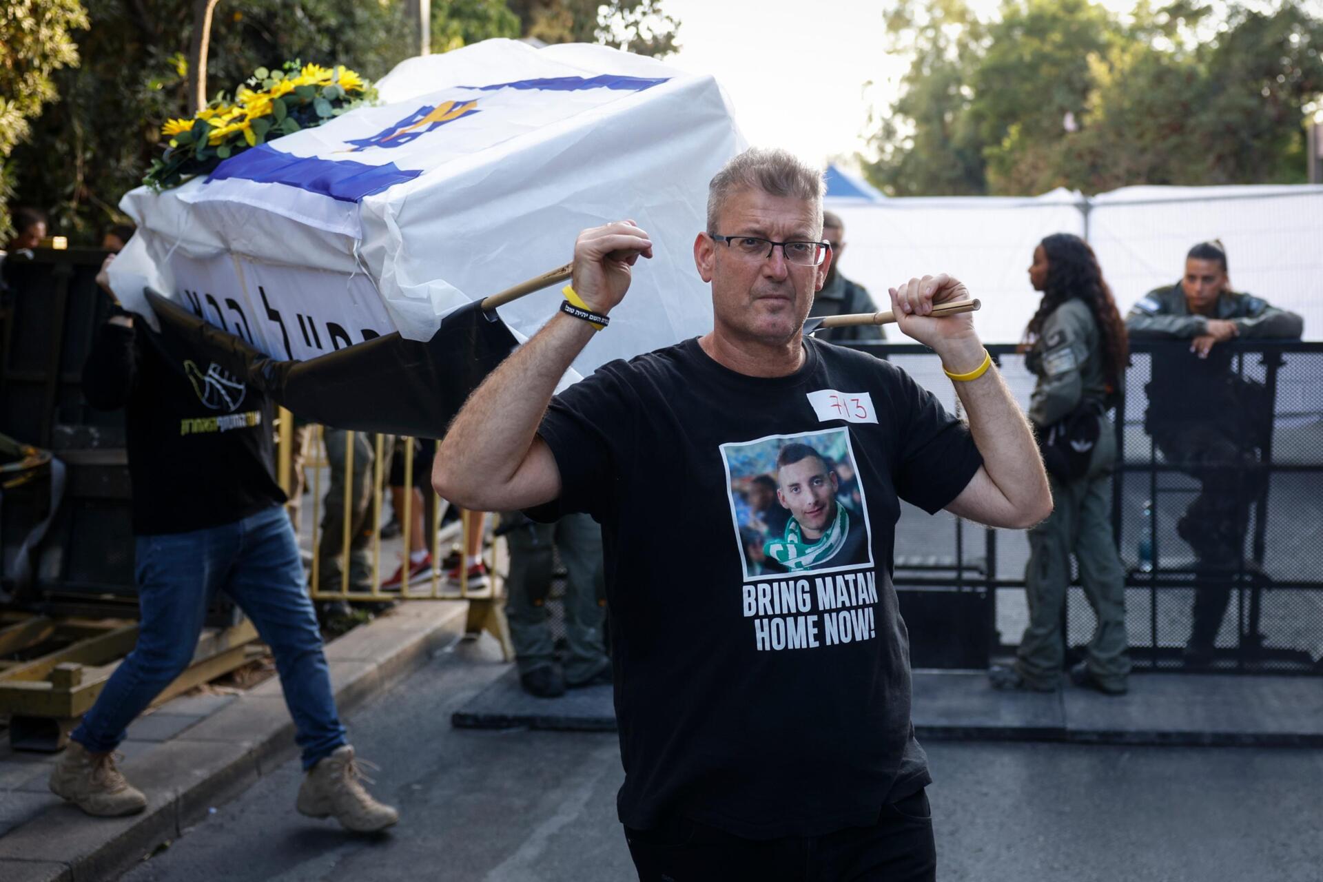 "Hoje estou aqui para pedir ao primeiro-ministro para libertar todos os nossos 48 irmãos", apela Haggai Angrest, o que implicaria um acordo até ao momento por alcançar com o Hamas e que o próprio Netanyahu argumentou que o tempo da negociação com os islamitas palestinianos já expirou, apesar da pressão internacional e também dentro de Israel.