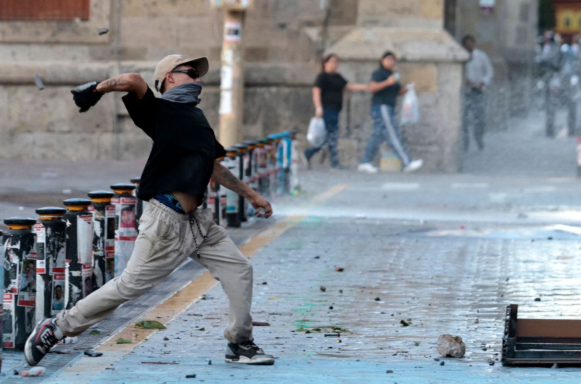 "Deviam ter protegido Carlos Manzo assim!", gritaram alguns manifestantes às forças de segurança, que responderam com extintores e gás lacrimogéneo.