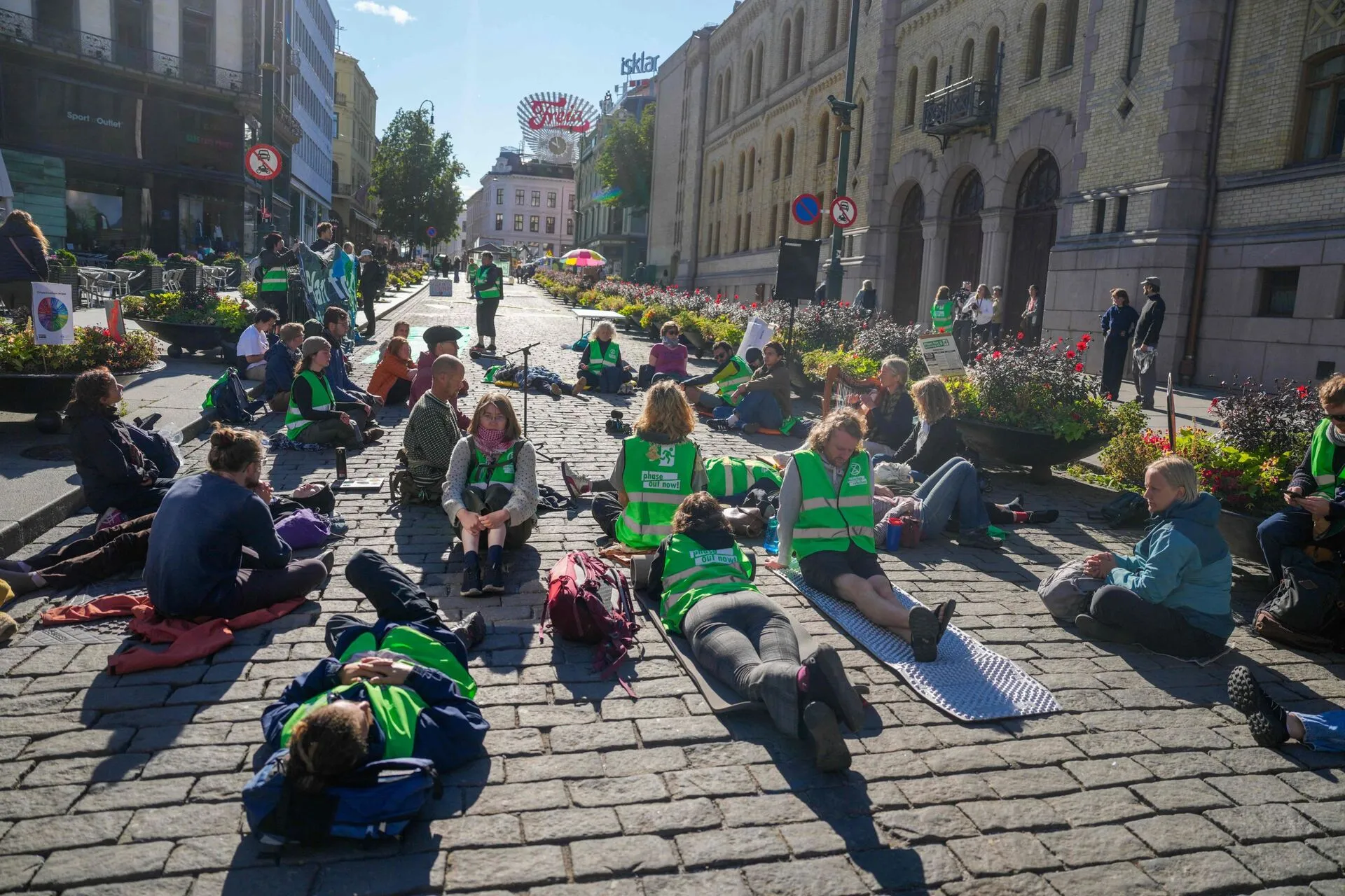 Mais de uma centena de ativistas climáticos bloquearam, esta quinta-feira, a avenida principal de Oslo manifestando-se frente ao principal banco da Noruega para exigir que o país ponha fim à sua indústria petrolífera.