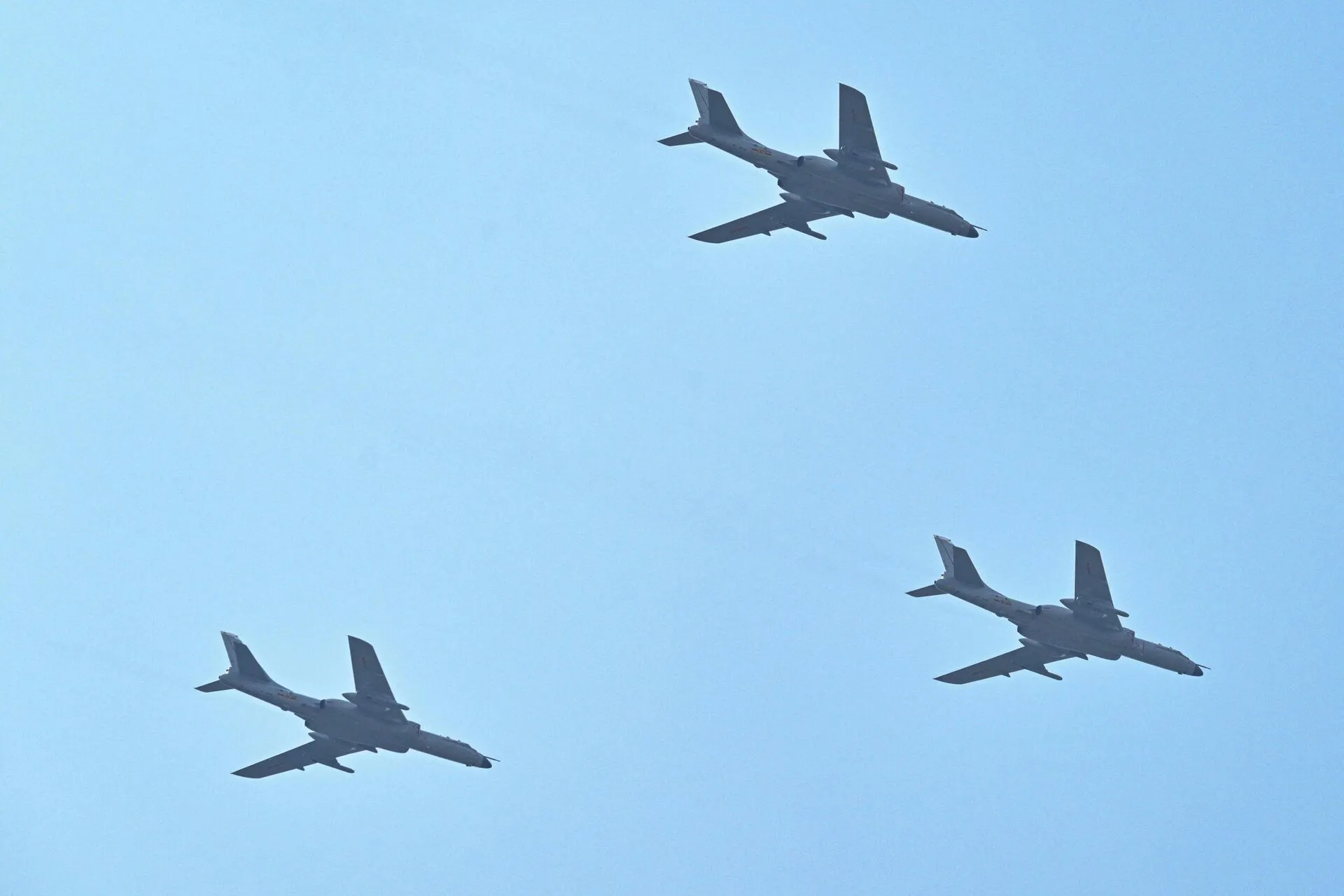 Bombardeiros chineses Xi'an H-6 a voar em formação