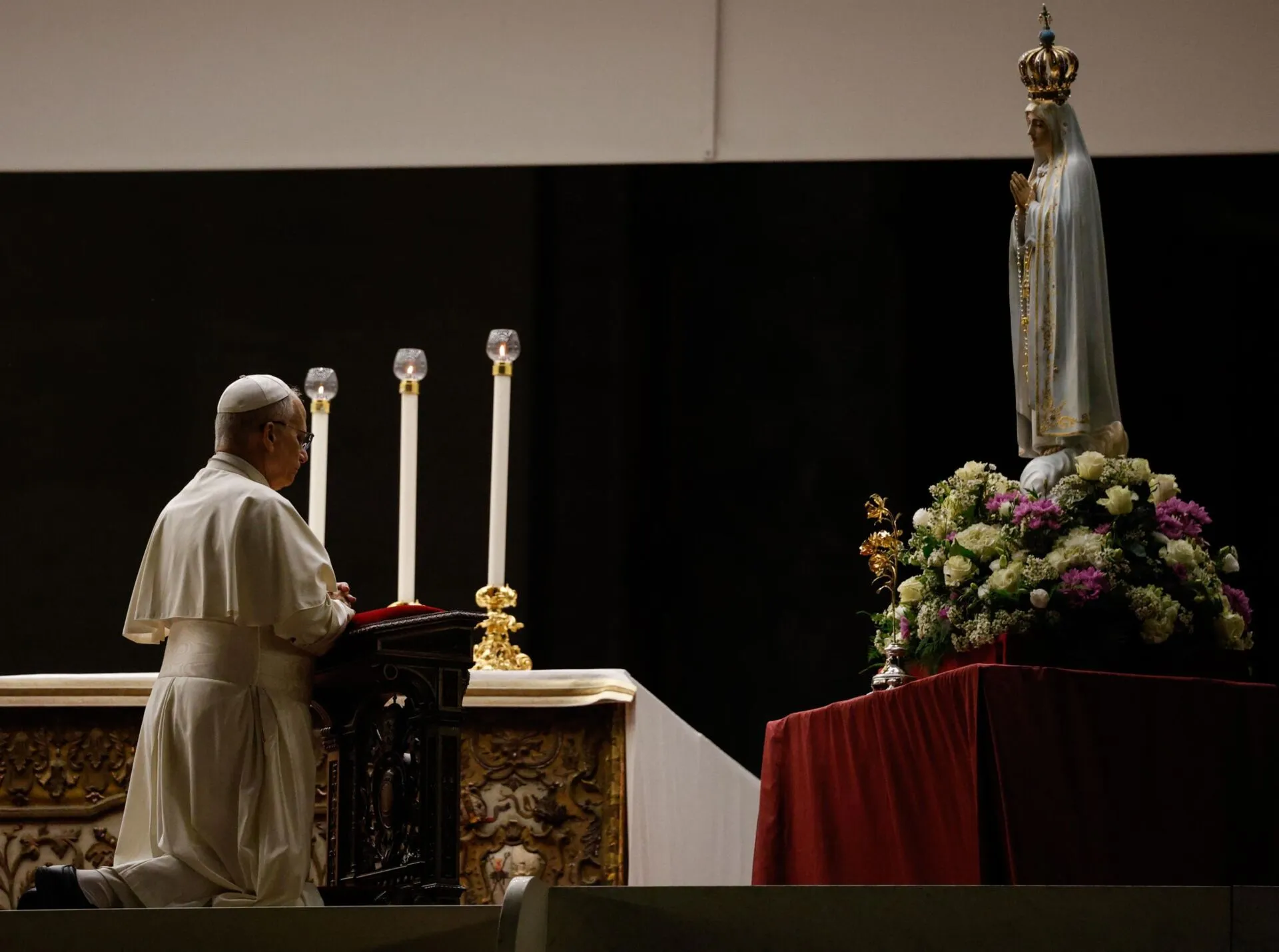 Papa faz apelo à paz junto à imagem da Virgem de Fátima na Praça de São Pedro