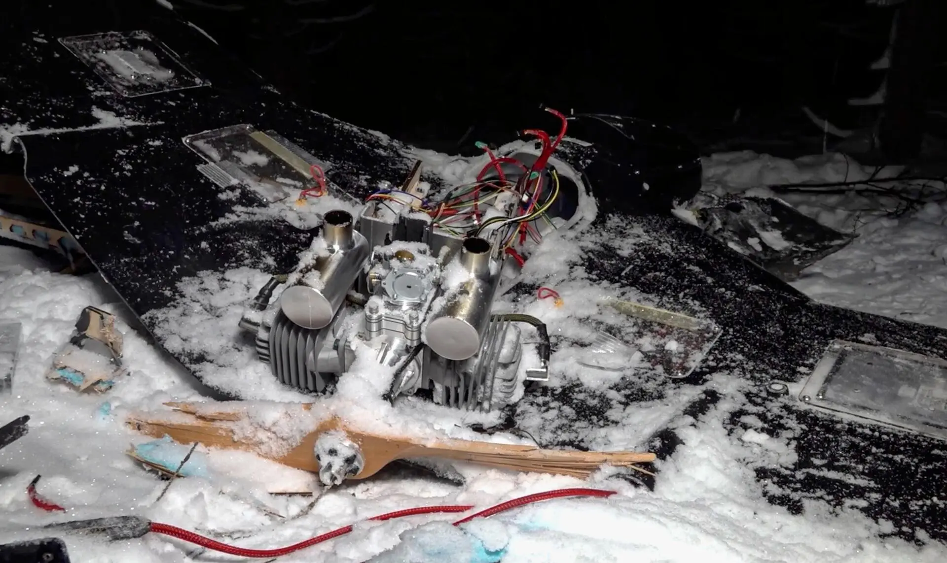 Imagem extraída de um vídeo divulgado pelo Ministério da Defesa russo mostra destroços de um veículo aéreo não tripulado que terá sido abatido durante uma tentativa de ataque à residência oficial de Putin