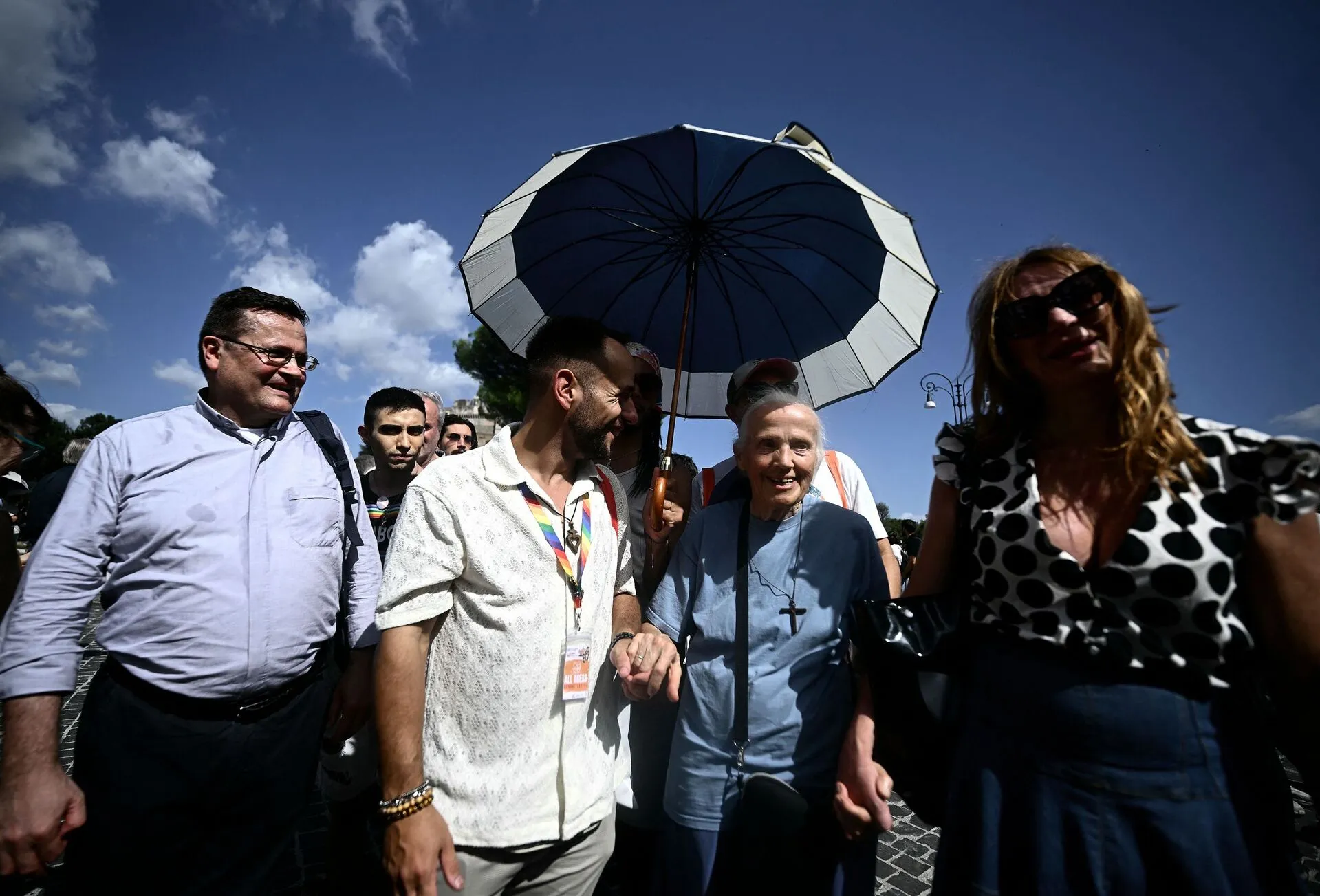 Yveline Behets, uma mulher transgénero de 68 anos vinda de Bruxelas, percorreu 130 km a pé com cerca de outras trinta pessoas LGBT+ ao longo da Via Francigena para chegar a Roma. A via é uma rota de peregrinação que começa na Inglaterra, atravessa a França, a Suíça e termina na Praça de São Pedro, no Vaticano.