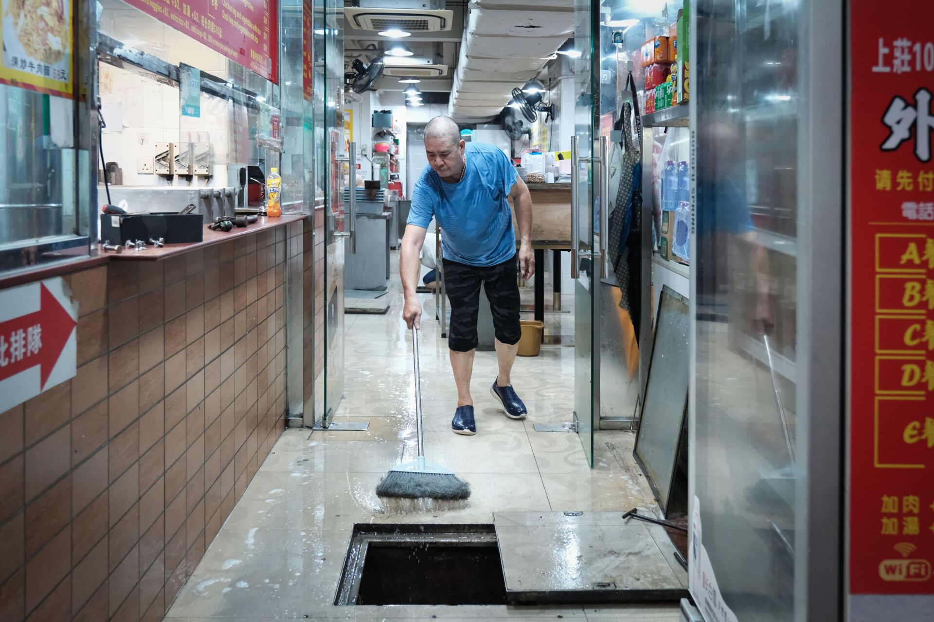Boa disposição, calma, "tudo normal, como de costume", era a mensagem que legendava a azáfama de limpeza, mais de cinco horas antes da normalidade ser antecipada pela Direção dos Serviços Meteorológicos e Geofísicos de Macau (DSMG), que anunciou prever a redução do alerta de tempestade para o nível 3 às 21 horas locais, mais sete do que em Lisboa.