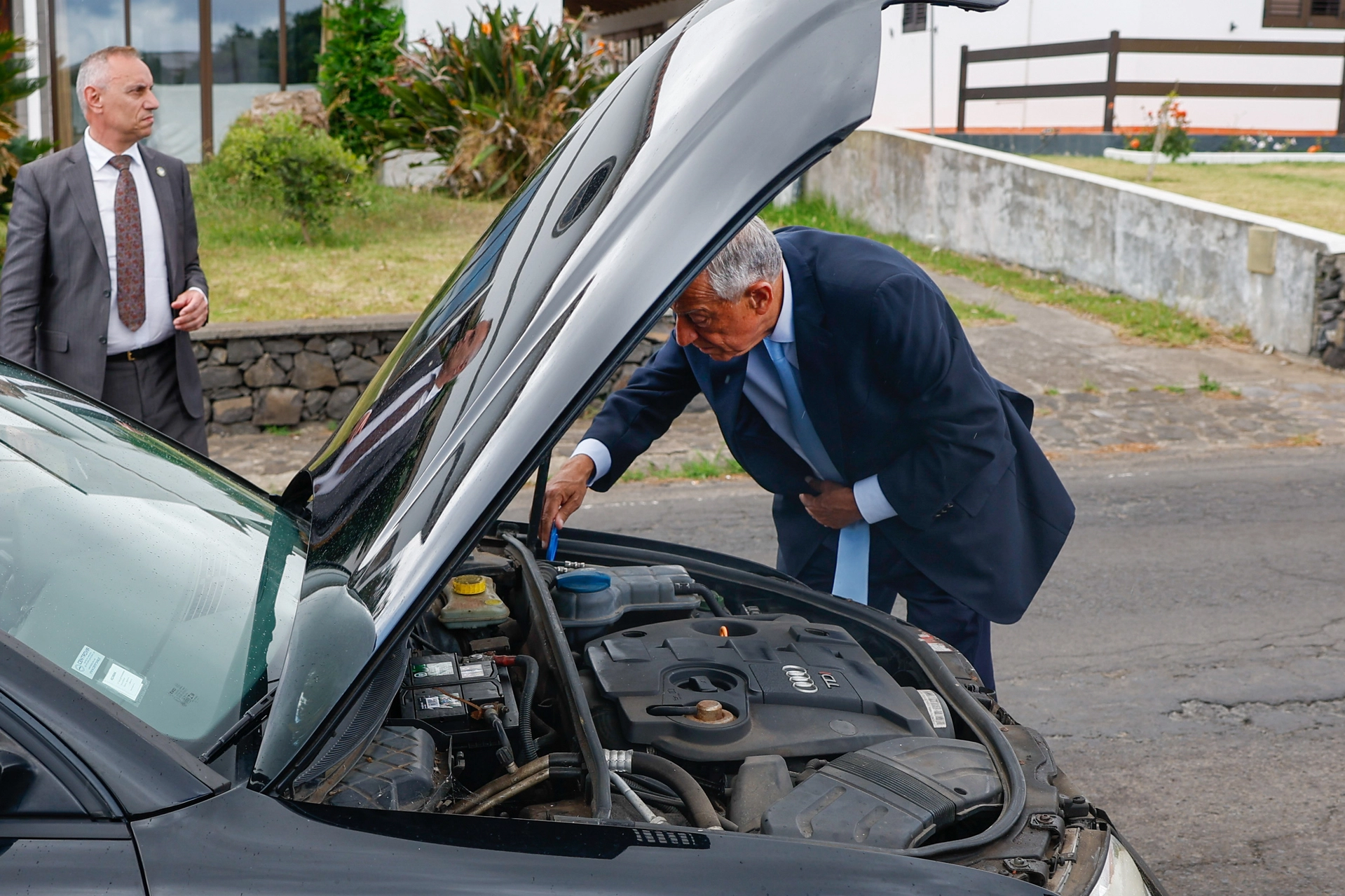 A preocupação causada pelo momento não pareceu afetar o presidente que, debruçado no capô da viatura, tentou perceber a origem do problema e, em direção à comunicação social, salientou a "emoção adicional" causada pela situação.