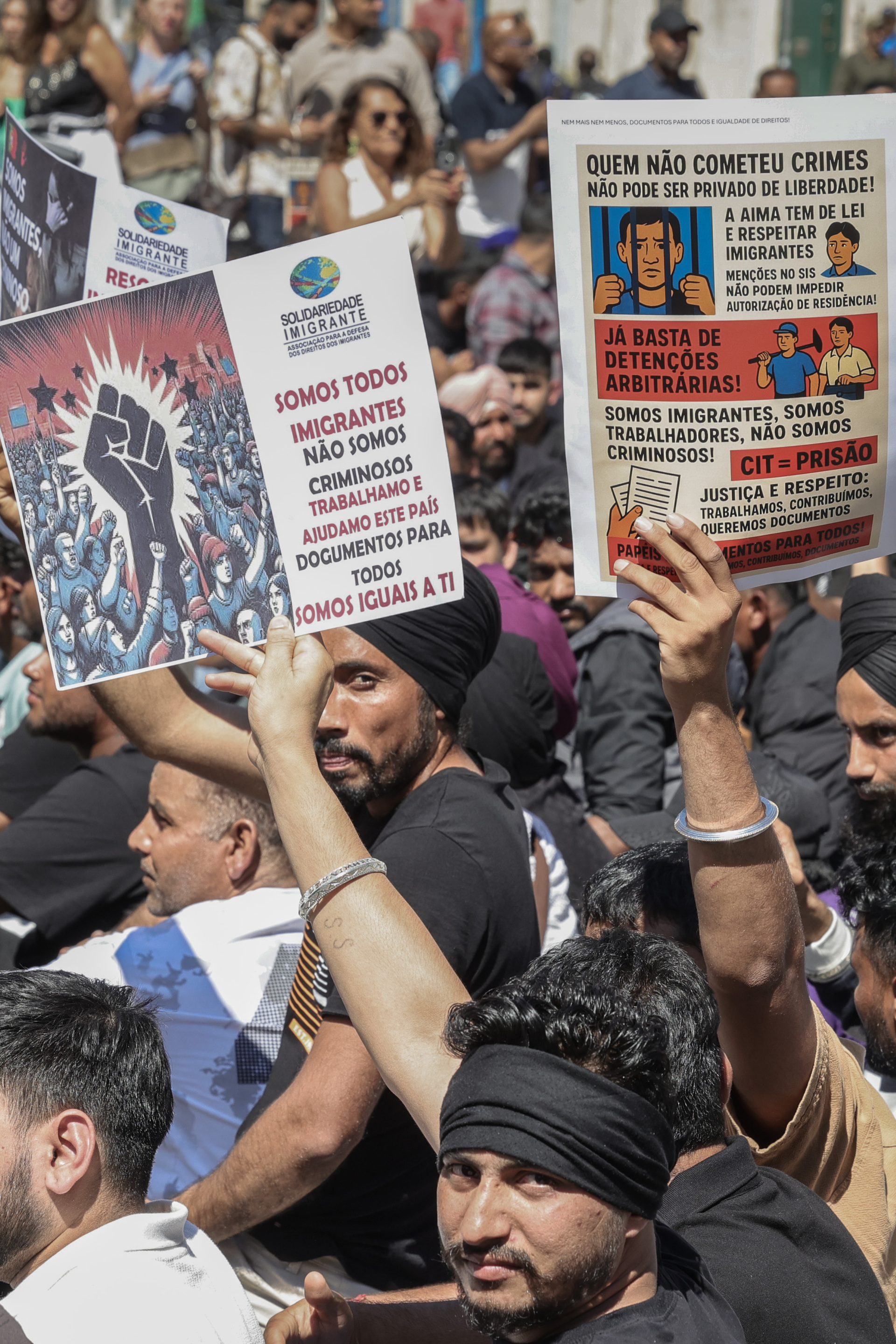 Várias centenas de pessoas, sobretudo imigrantes, estão esta quarta-feira à tarde concentradas em frente à Assembleia da República, em Lisboa, para pedir direitos e "documentos para todos".