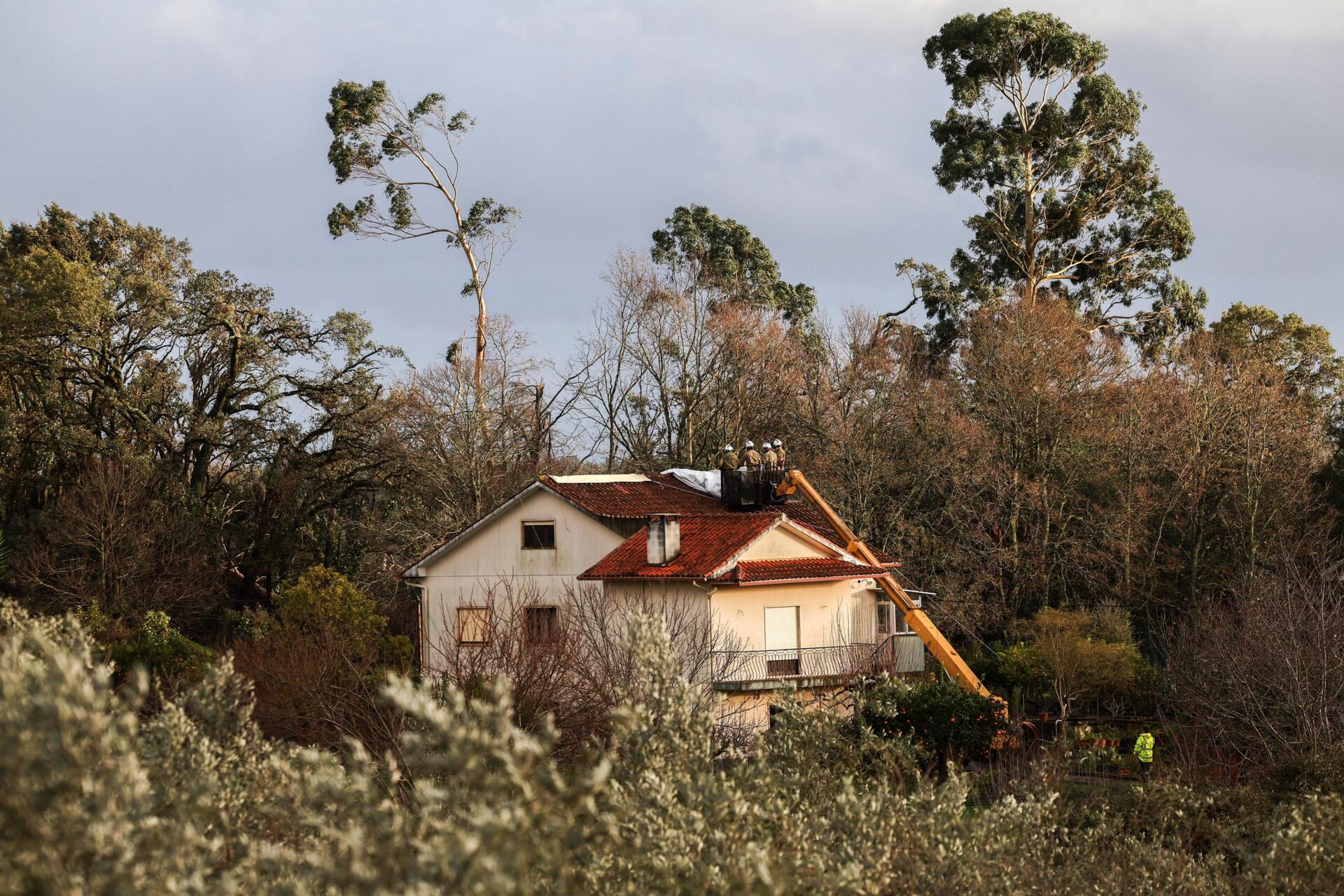 A Proteção Civil contabilizou cinco mortes diretamente associadas à passagem da depressão Kristin (três em Leiria, uma em Vila Franca de Xira e uma em Silves). A Câmara da Marinha Grande anunciou outra vítima mortal, à qual se somam mais três óbitos registados por quedas de telhados durante reparações (Batalha, Alcobaça e Porto de Mós) e uma morte por intoxicação com origem num gerador, em Leiria. (Foto: Estela Silva/Lusa)