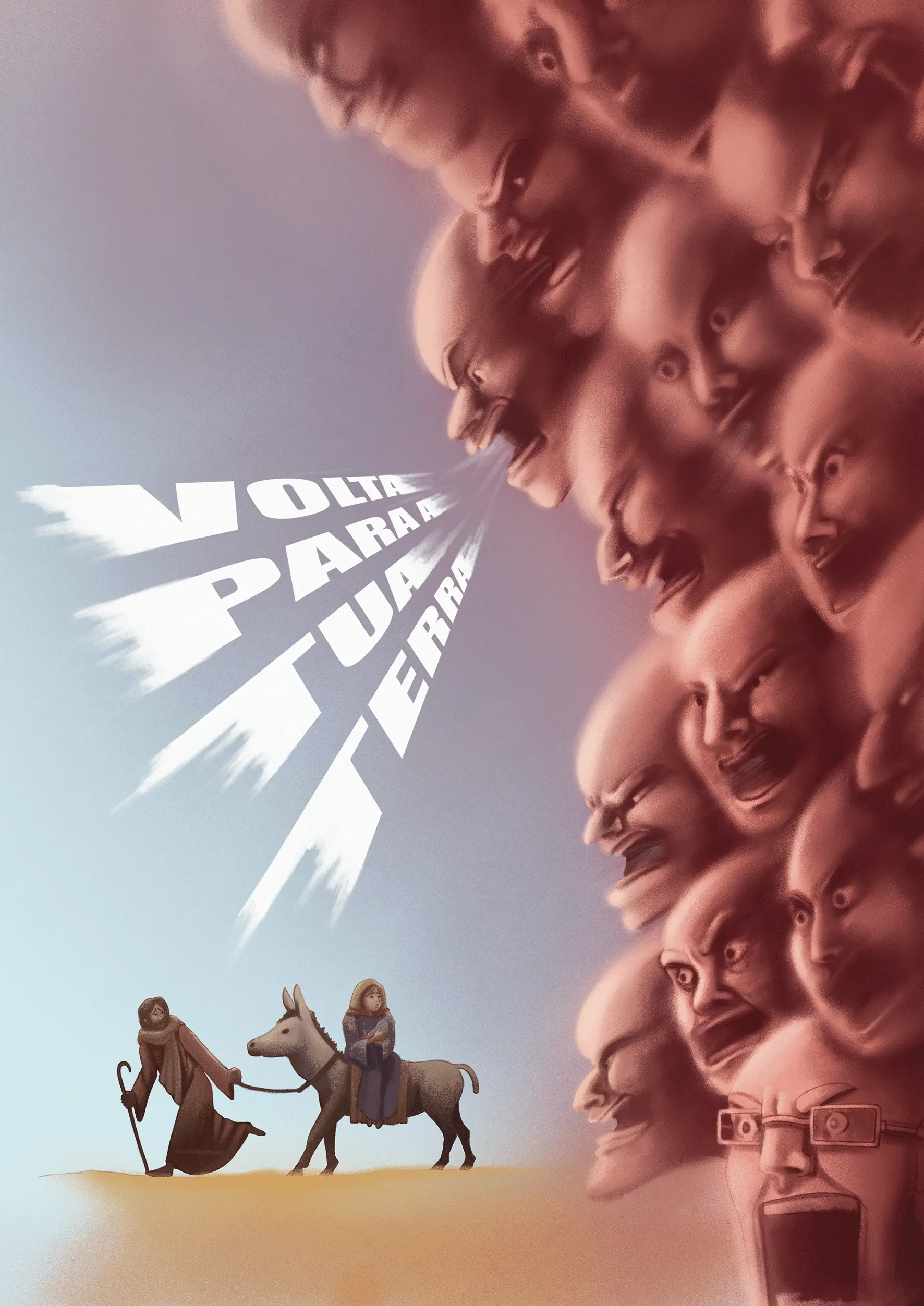 "Vai para a tua terra". A mensagem, acompanha pela representação de Maria, José e Jesus perseguidos por uma multidão intolerante, preenche a ilustração de Ana Pinheiro, 23 anos, natural de Vila Nova de Famalicão, que faz a capa de Natal deste ano do JN. Surgiu de uma conversa com os pais ao jantar e do repto: "Jesus e os pais também foram imigrantes". "Há pessoas, muitos cristãos, que às vezes são um bocadinho hipócritas e acabam por menosprezar os imigrantes que estão a tentar ter uma vida melhor em Portugal", conta a estudante do segundo ano do mestrado em Ilustração e Animação do IPCA.
