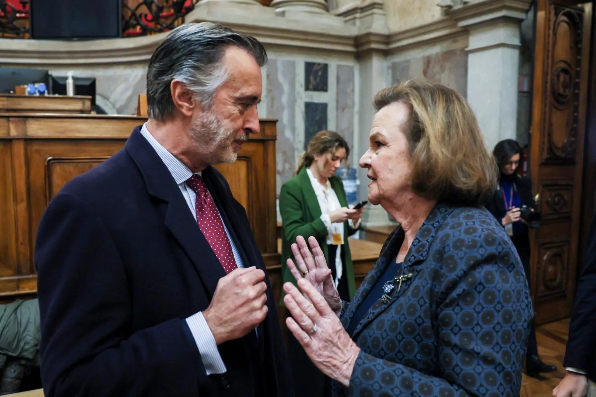 Na Sala do Senado, já estava o candidato presidencial apoiado por PSD e CDS-PP Luís Marques Mendes, que ambos fizeram questão de cumprimentar.