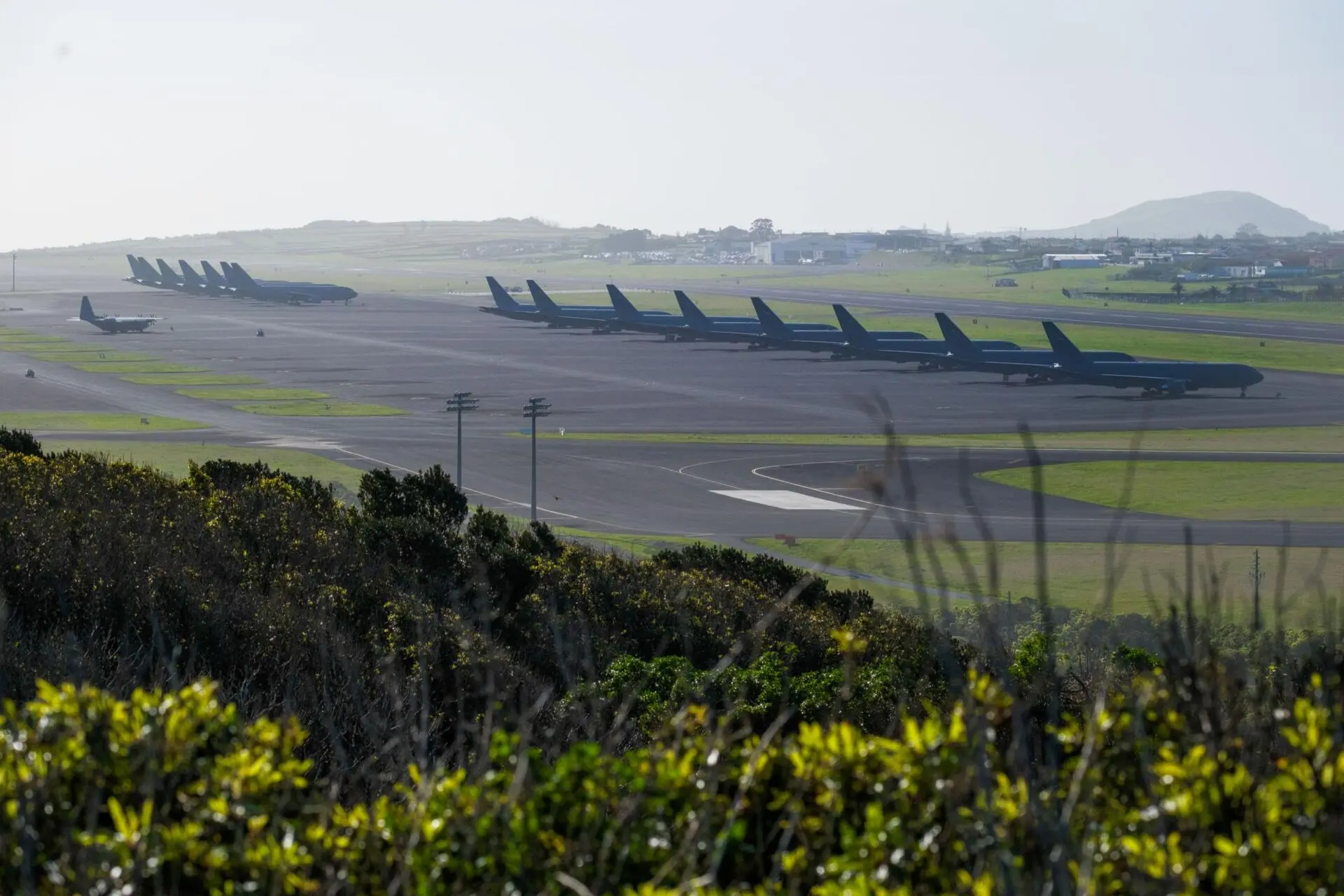 Na quarta-feira à tarde estavam estacionados nas Lajes 11 reabastecedores KC-46 Pegasus, 12 caças F-16 Viper e um cargueiro militar C-17 Globemaster III. No final da semana chegaram os restantes reabastecedores, mas entretanto partiram os caças e o cargueiro.