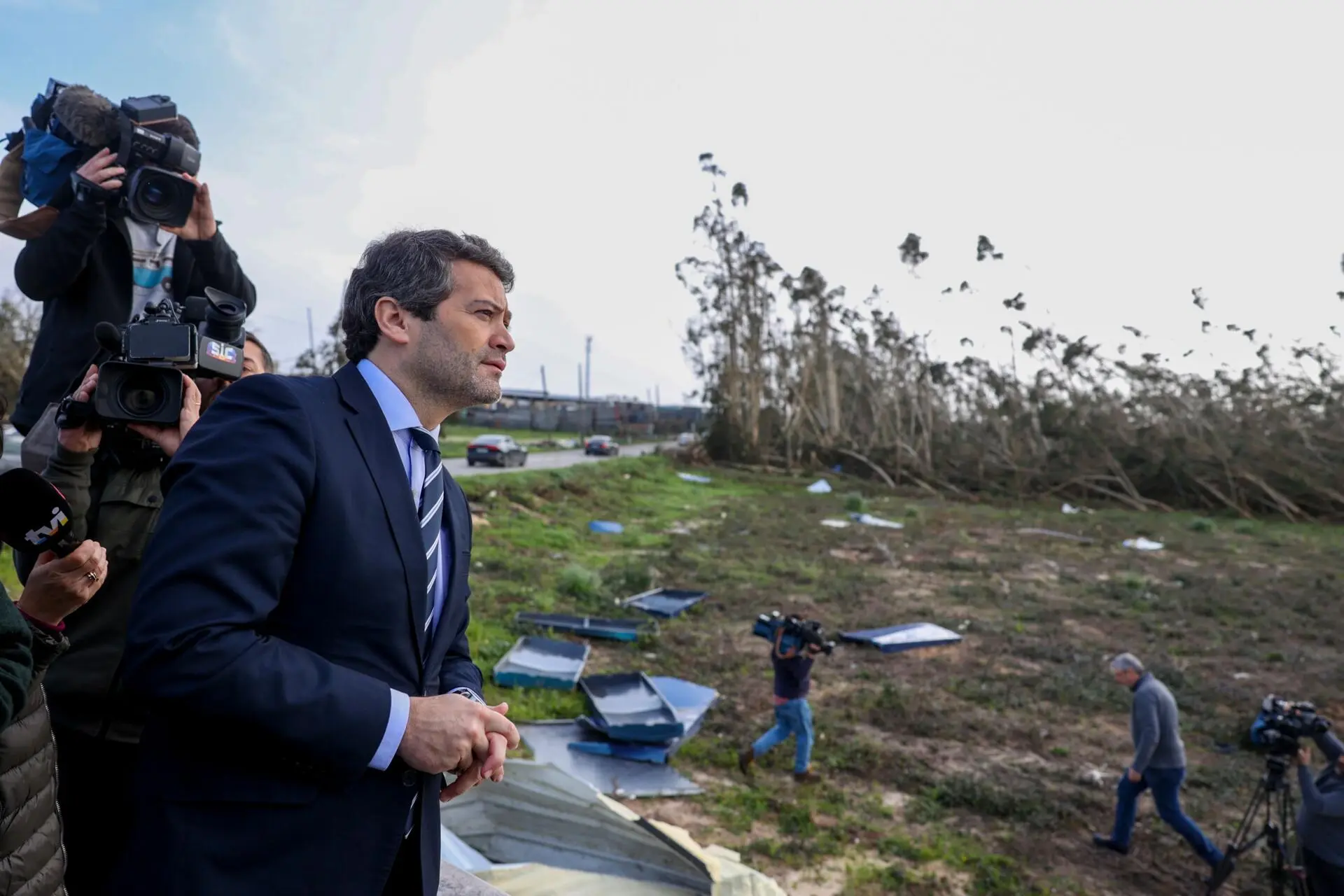 O candidato a presidente da República visitou este sábado uma estufa destruída pelo mau tempo, na zona de Ortigosa, no concelho e distrito de Leiria. Na quinta-feira, esteve no centro da cidade, mais de 36 horas depois da passagem da depressão Kristin, e no dia seguinte participou numa recolha de alimentos.