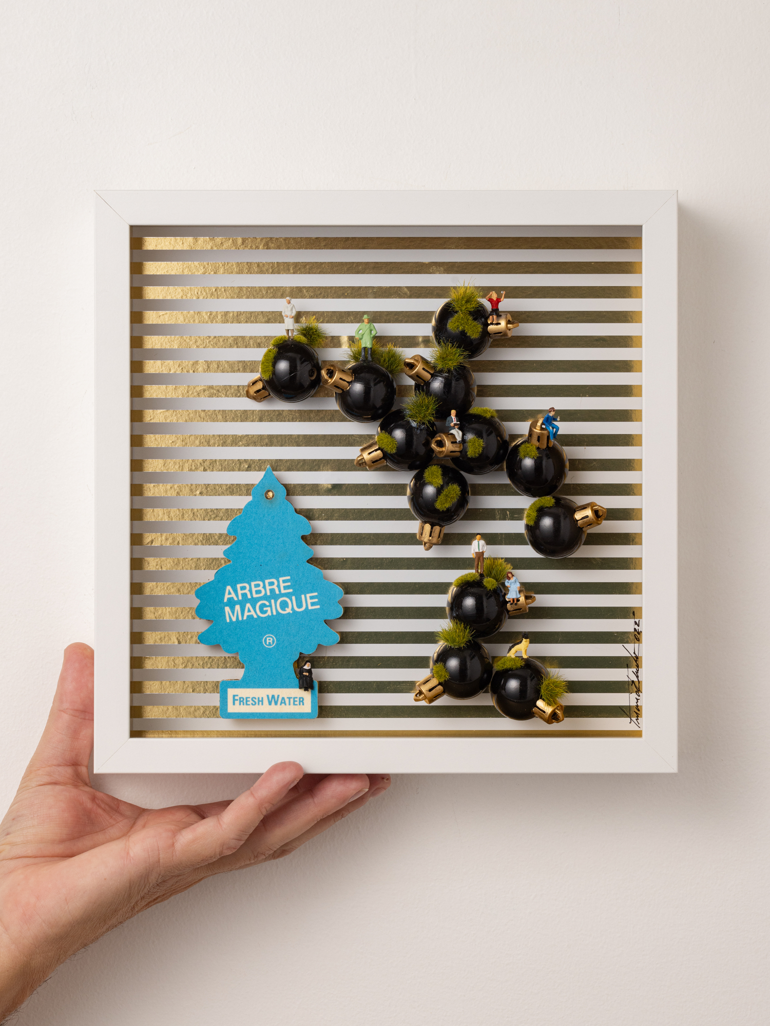 Há azulejos com ilustrações de Natal criadas por artistas portugueses, numa coleção de 24 peças que quis recuperar o típico azulejo nacional, mas numa versão contemporânea e natalícia. Como os há com frases relativas à época. Também há bolas de cortiça com um pequeno presépio dentro, todas trabalhadas à mão, que servem para enfeitar a árvore. Há até um quadro, criado a partir de objetos banais, em que personagens em miniatura habitam um lugar fantasiado, para pendurar na parede.