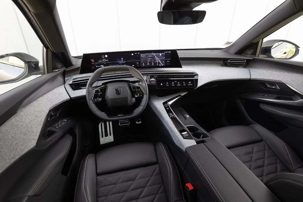 No interior, destaca-se o novo ecrã panorâmico de 21 polegadas, que integra painel de instrumentos e sistema multimédia. O conceito i-Cockpit mantém-se, agora mais digital e centrado na condução, embora algumas funções exijam navegação pelo ecrã.