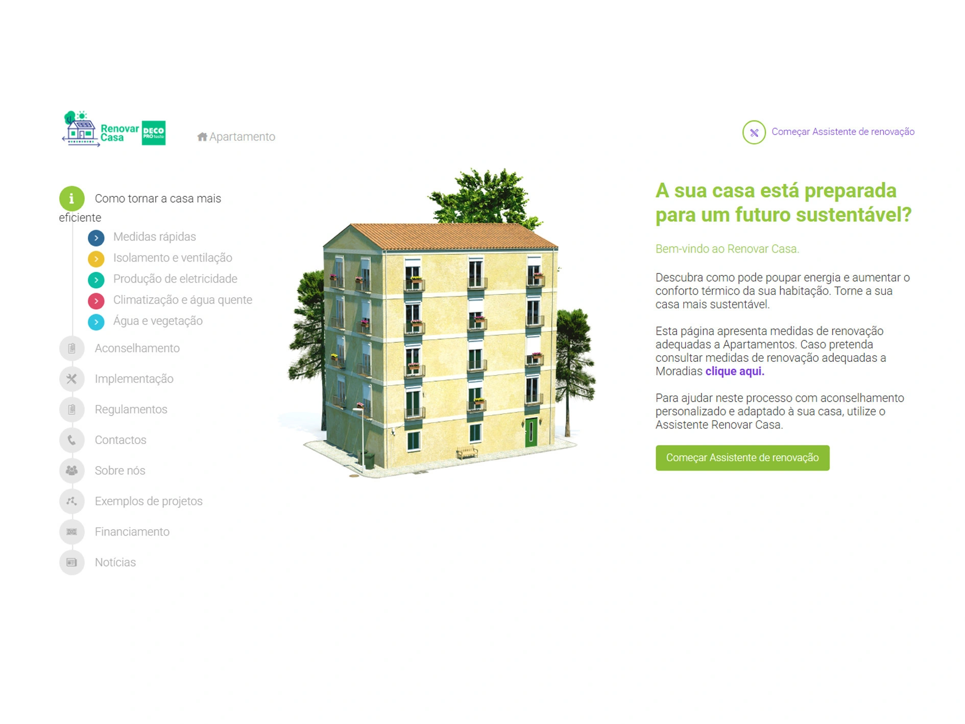 As pessoas podem também aceder a um assistente, que ajuda a fazer um diagnóstico do imóvel - com base nos consumos energéticos, medidas já implementadas e hábitos de utilização - e identifica oportunidades de melhoria adaptadas ao caso concreto. Os interessados recebem um relatório que estima custos, potenciais poupanças e impacto energético das medidas e possibilita o contacto com profissionais e empresas para implementar as soluções. Por fim, disponibiliza informação sobre apoios e financiamentos existentes.
