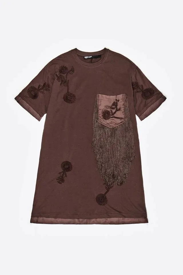 Vestido curto bordado e franjas castanho, Bimba Y Lola, 165€