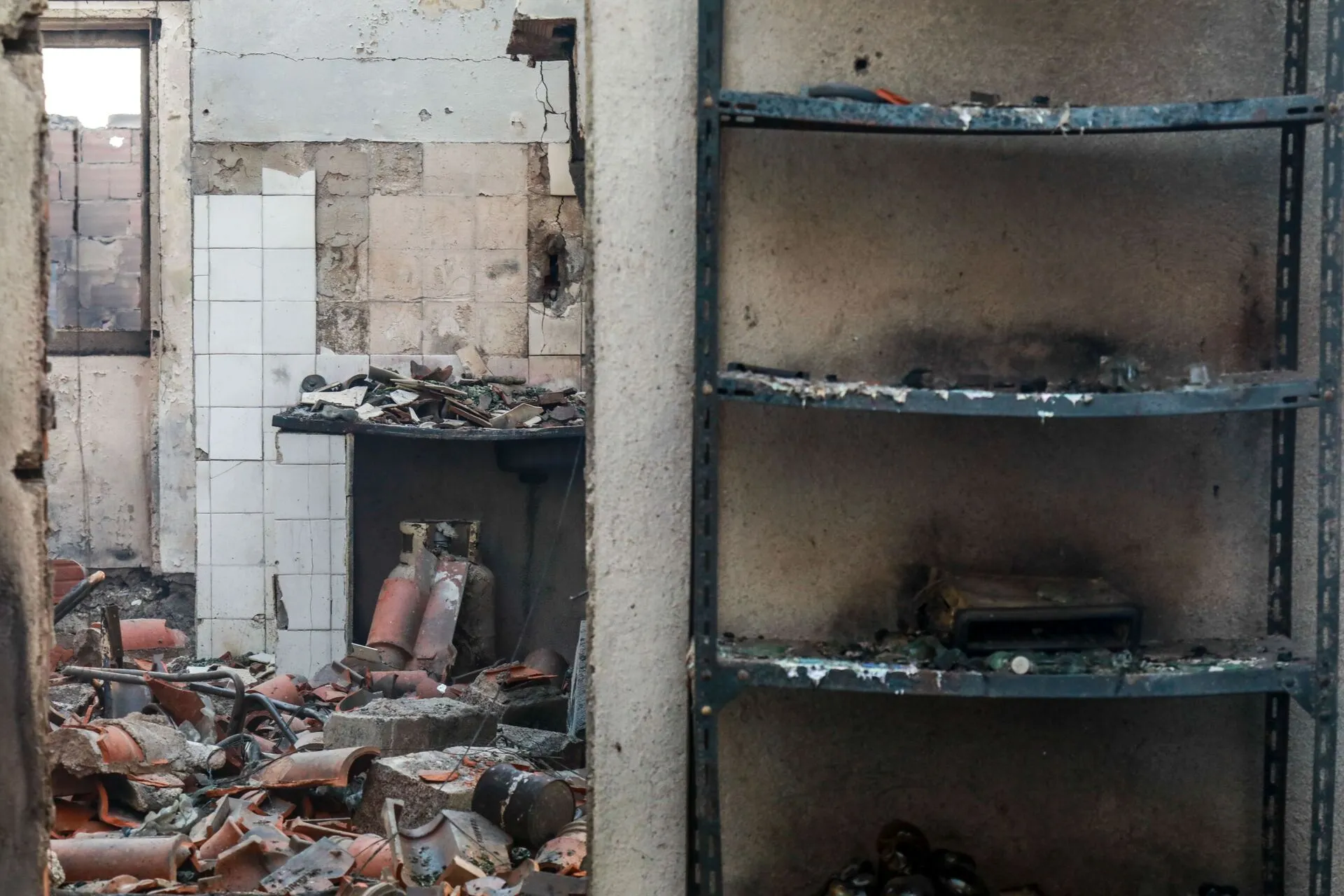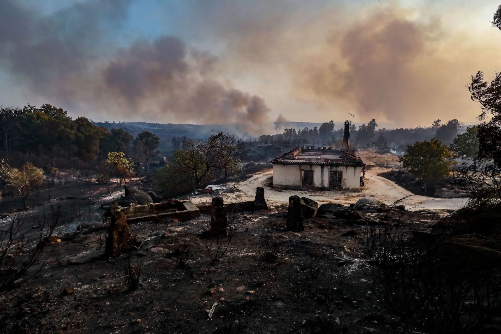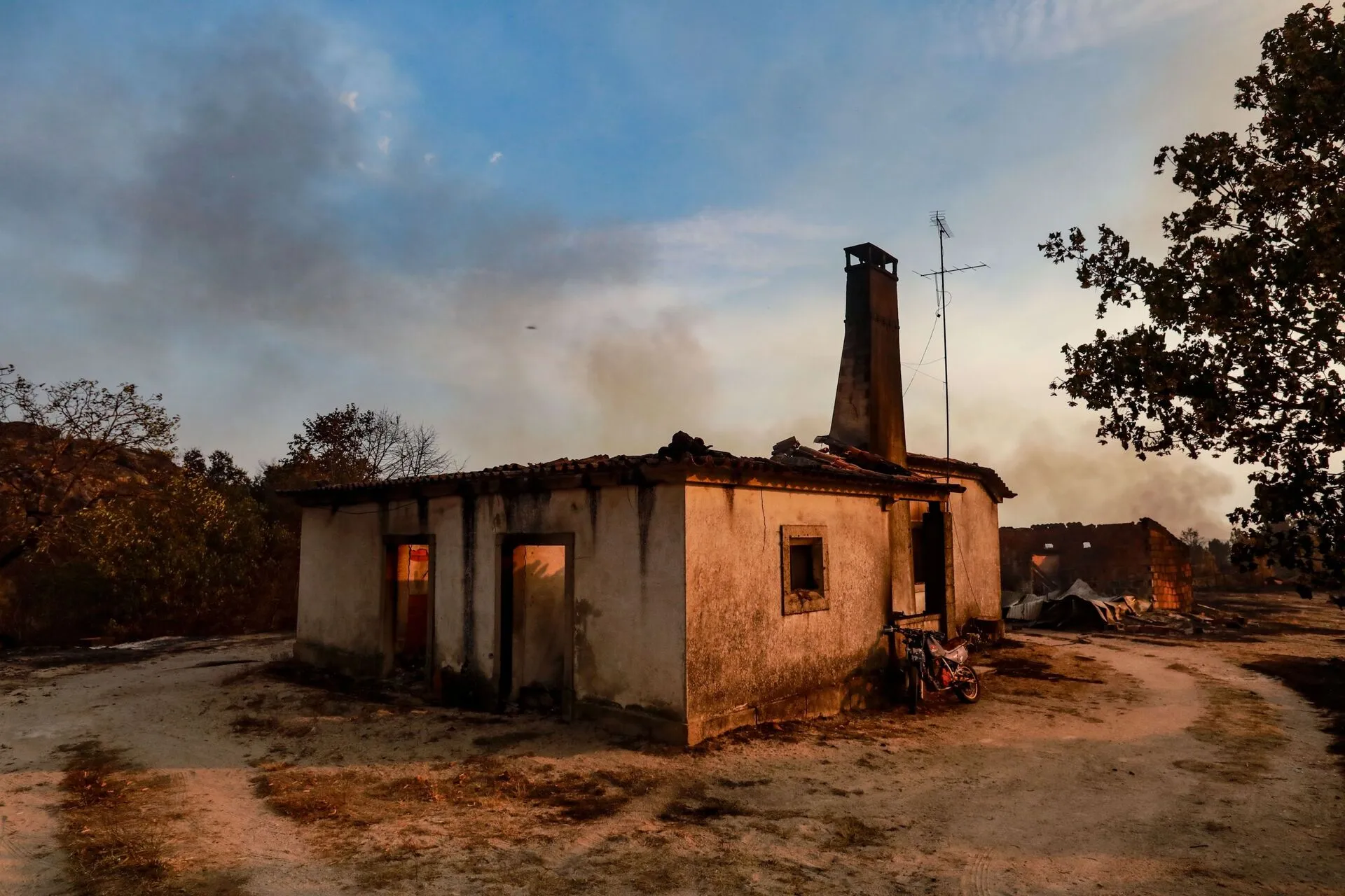 epa12298541 A house burnt by a wildfire fire that broke out four days earlier in the municipality of Trancoso and spread to the municipality of Fornos de Algodres, district of Guarda, in Aveleiras, 13 August 2025. EPA/MIGUEL PEREIRA DA SILVA