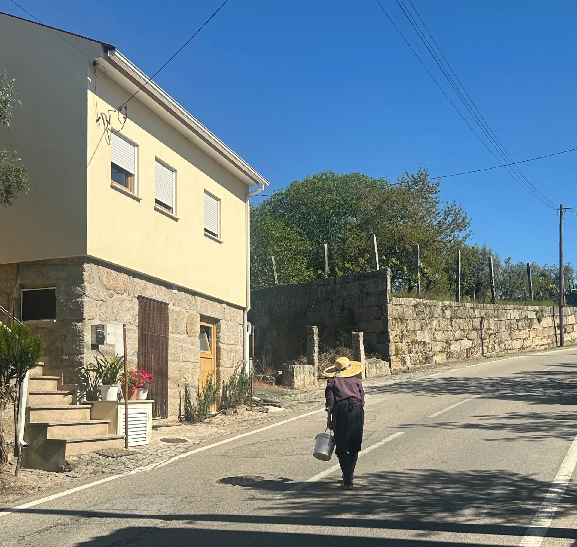 Fontes isoladas marcam o percurso, escondidas entre a vegetação, ladeadas por muros gastos. Junto a um antigo lagar de azeite, o tanque comunitário ainda é usado. Em redor, há roupa lavada estendida ao sol, como se o tempo parasse ali para secar também a rotina. Adivinha-se um passado de colheitas fartas, de azeite espremido com esforço e precisão.