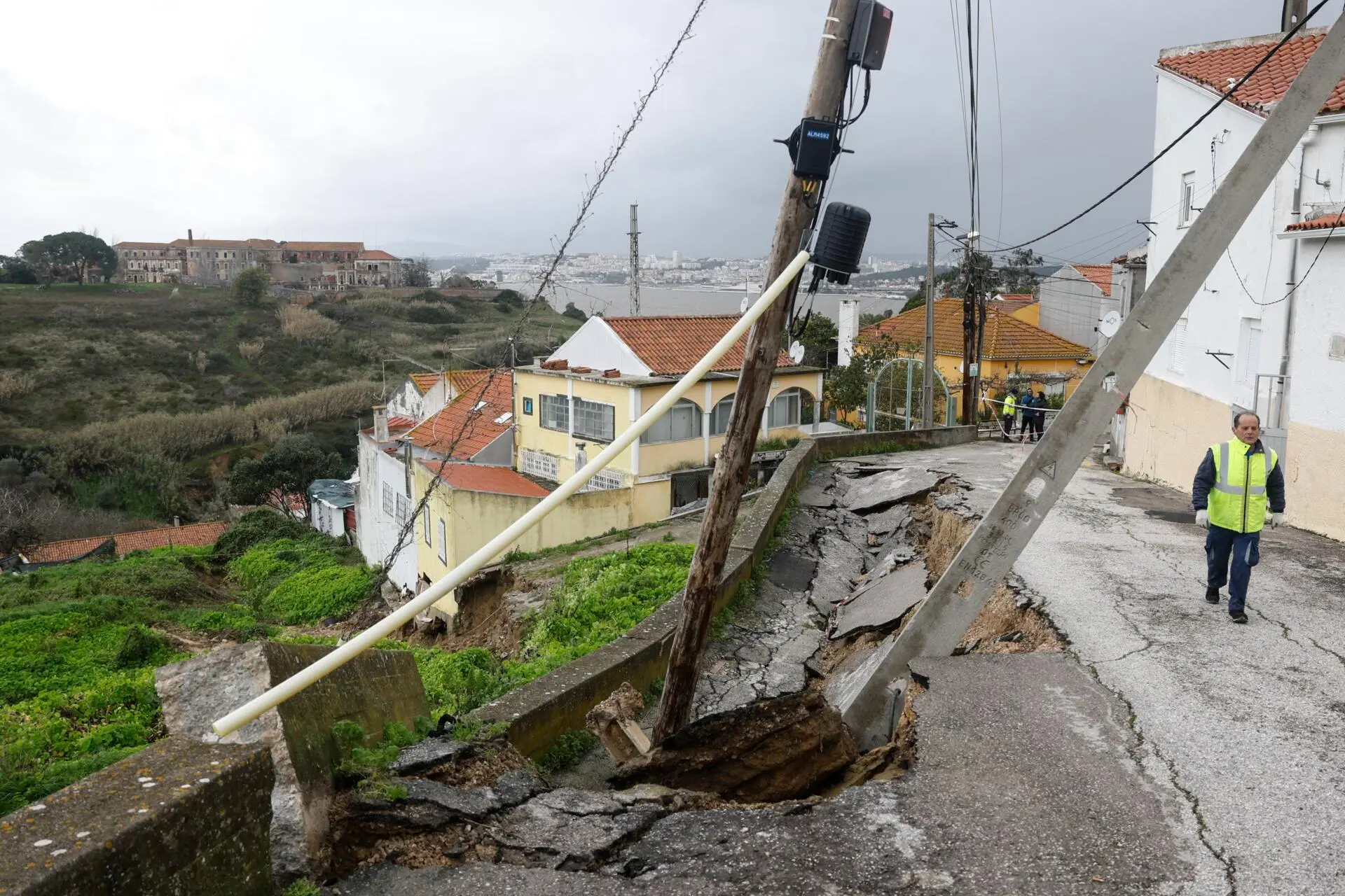 Desde o início das tempestades que assolaram o território português, o concelho de Almada tem registado vários deslizamentos de terras nas arribas da Costa da Caparica e de Porto Brandão. Cerca de 500 pessoas da zona de Porto Brandão estão deslocadas. Segundo a presidente da Câmara Municipal, pelo menos 160 pessoas já foram acolhidas pela autarquia, só de Porto Brandão.