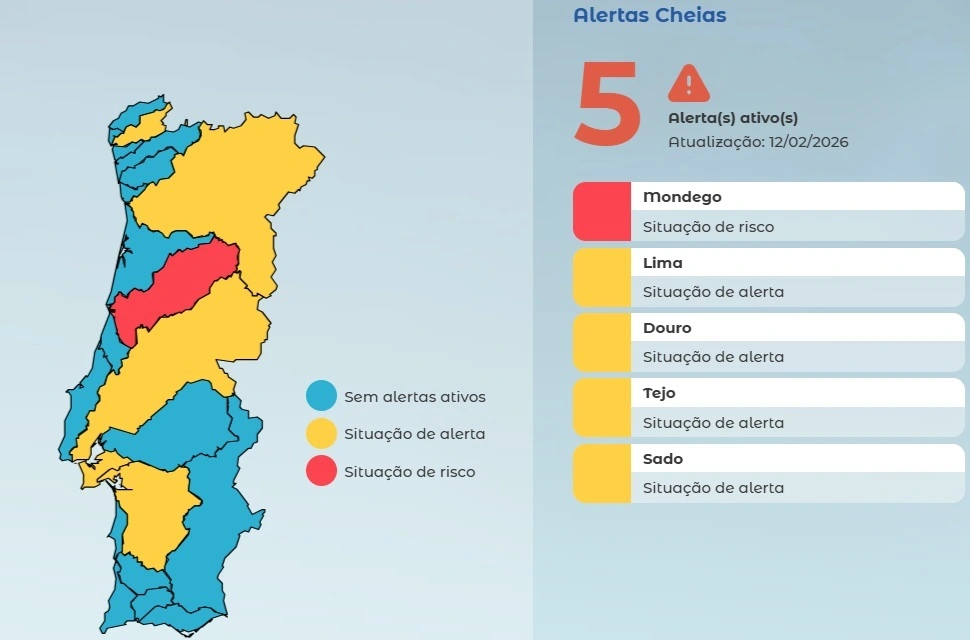 A bacia do Mondego era, às 8 horas, a única em situação de risco, com o volume de armazenamento da barragem da Aguieira acima dos 99%, perto do limite de segurança daquela infraestrutura.