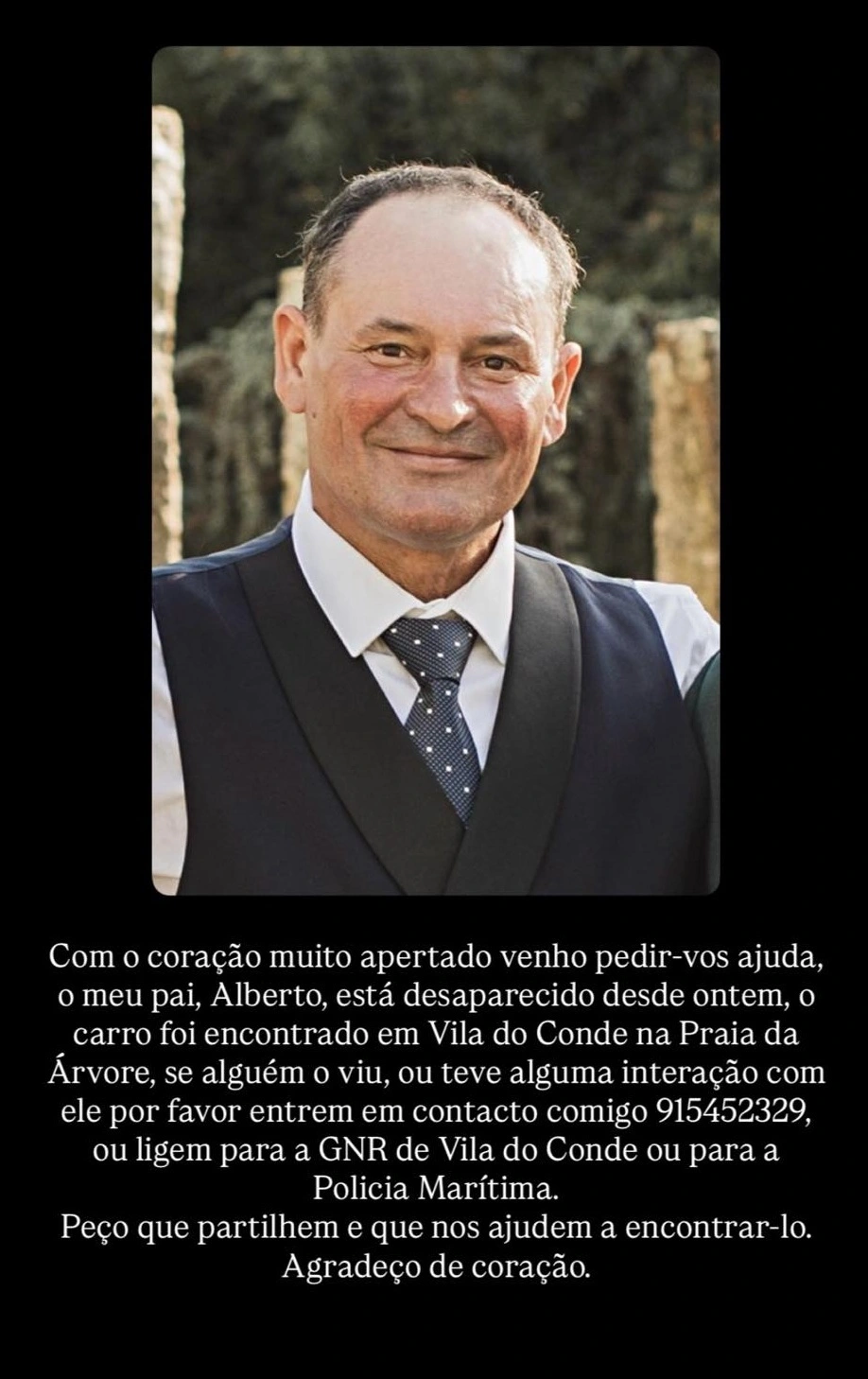 Foi ao café ali bem próximo e, depois disso, nunca mais foi visto. O carro foi encontrado pela filha junto à praia de Árvore, em Vila do Conde. Polícia Marítima, GNR e Polícia Judiciária estão a fazer buscas.