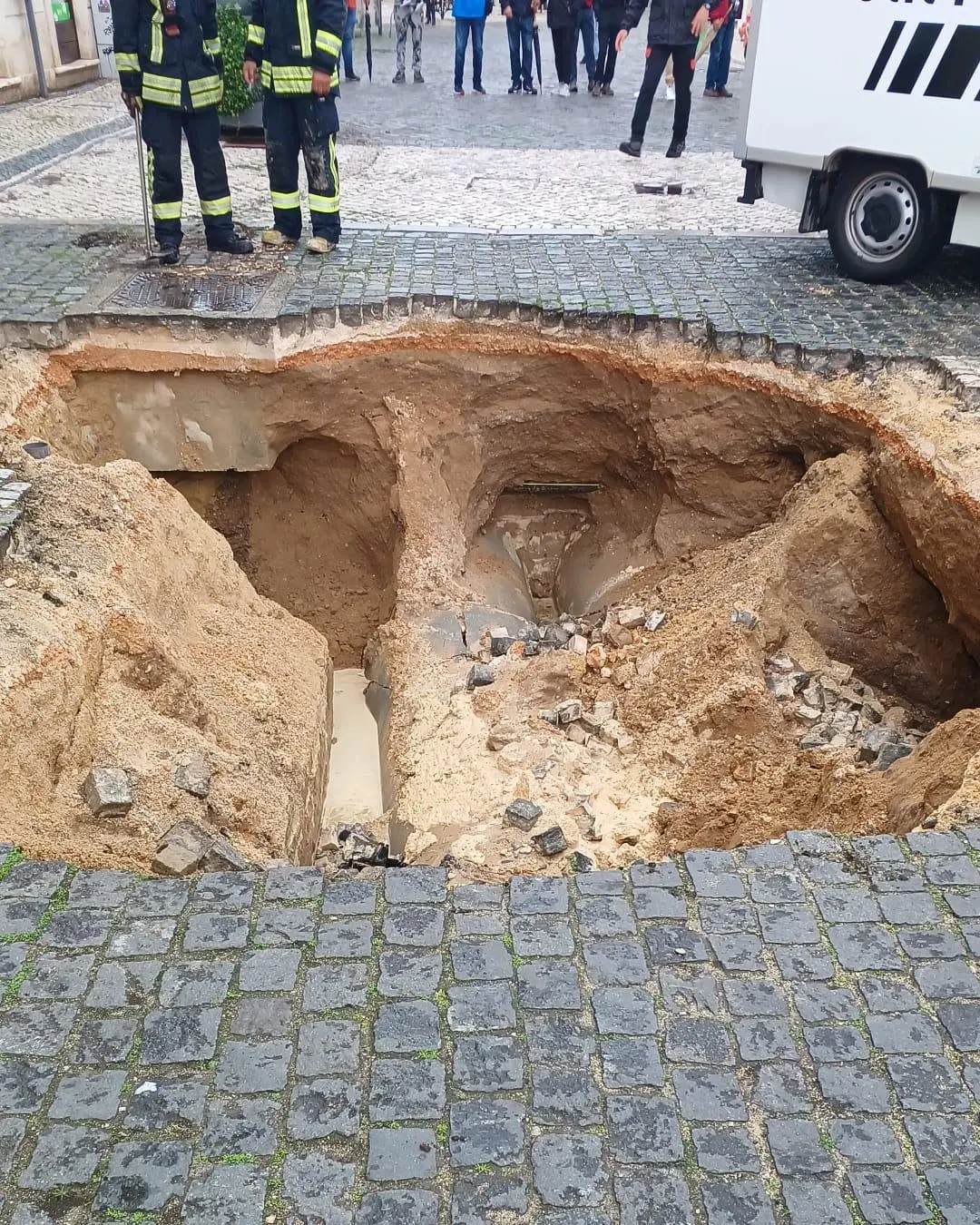 A garantia é dada ao JN por Luís Lopes, vereador da Proteção Civil da Câmara de Leiria, que justifica o abatimento do solo com a intensidade da chuva. "O caudal, desta manhã, acabou por arrastar as terras que estavam em cima de dois coletores de águas pluviais."