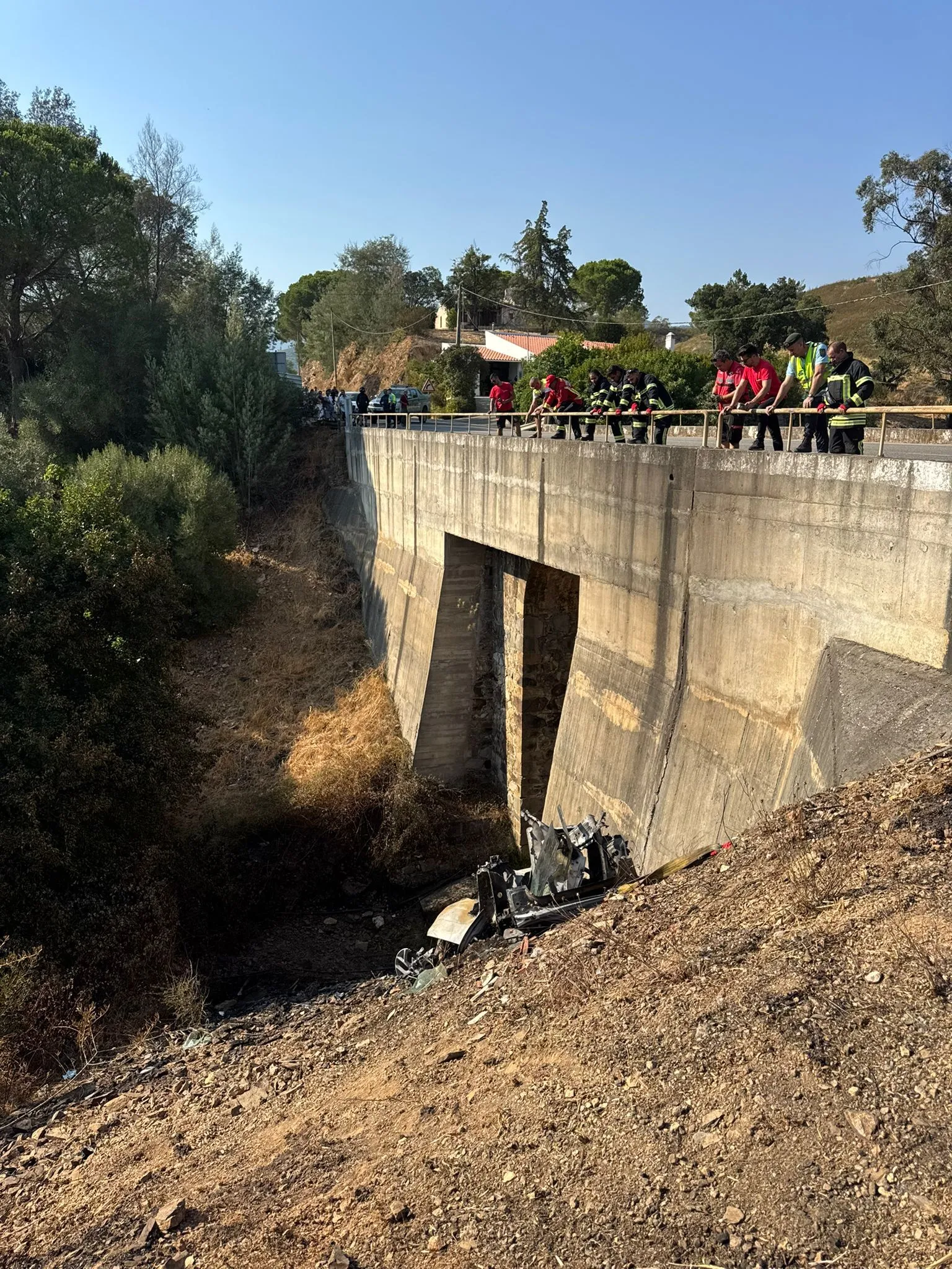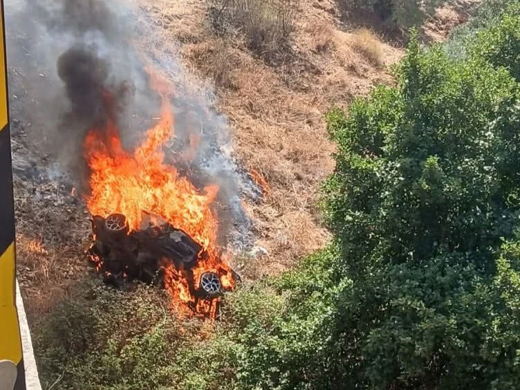 O alerta foi dado pelas 12.46 horas. O carro caiu junto à Ponte da Ribeira da Carrasqueira e incendiou-se, tendo as chamas passado para o mato e criado um incêndio florestal.